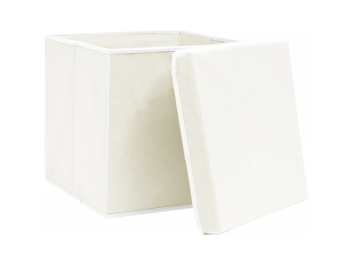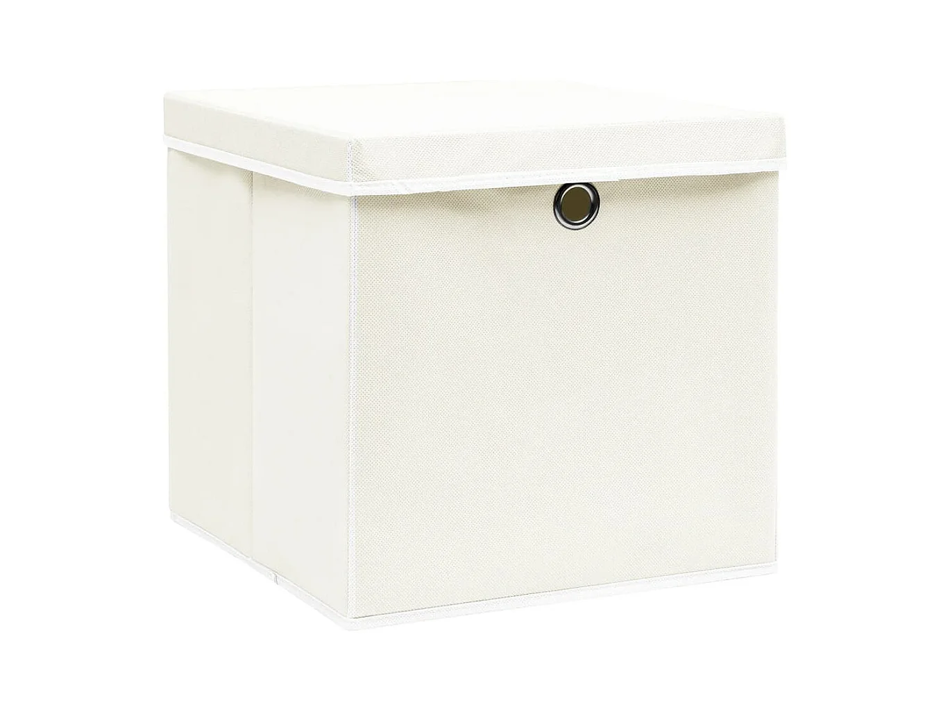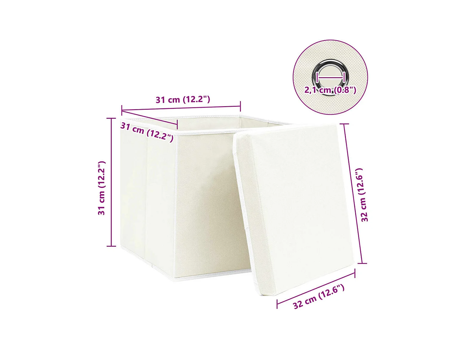 Cajas de almacenaje con tapa 10 uds Crema 32x32x32 cm Tela