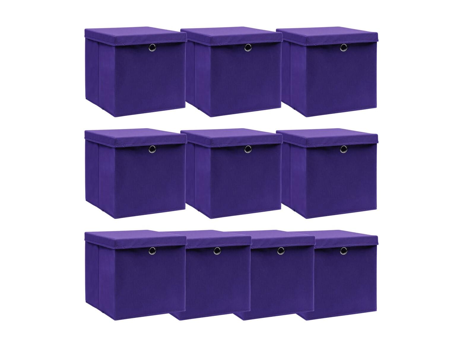 Cajas de almacenamiento y tapas 10 piezas Morado 32x32x32cm Tela
