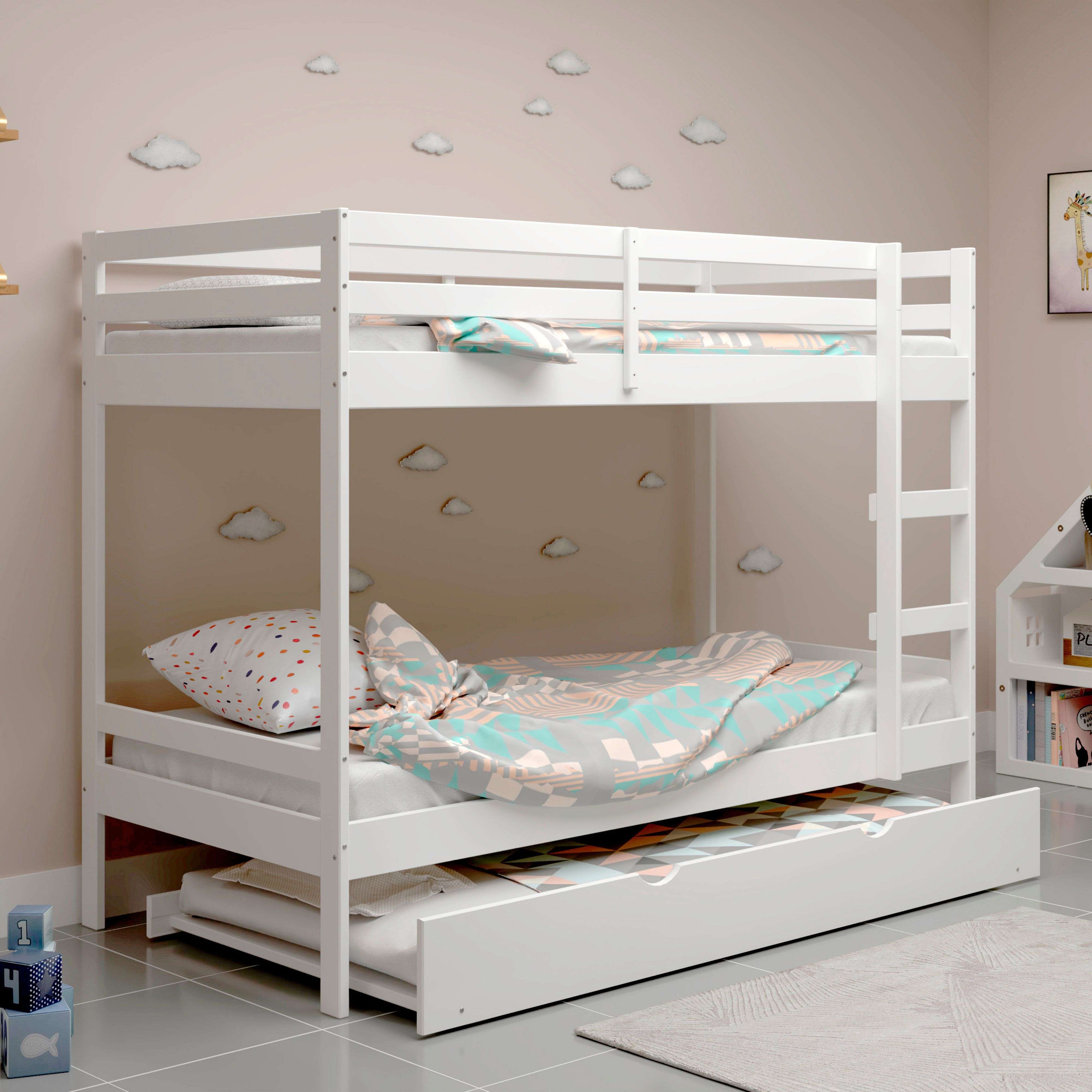 Cama de arrastre juvenil madera blanco lavado 90x180 cm