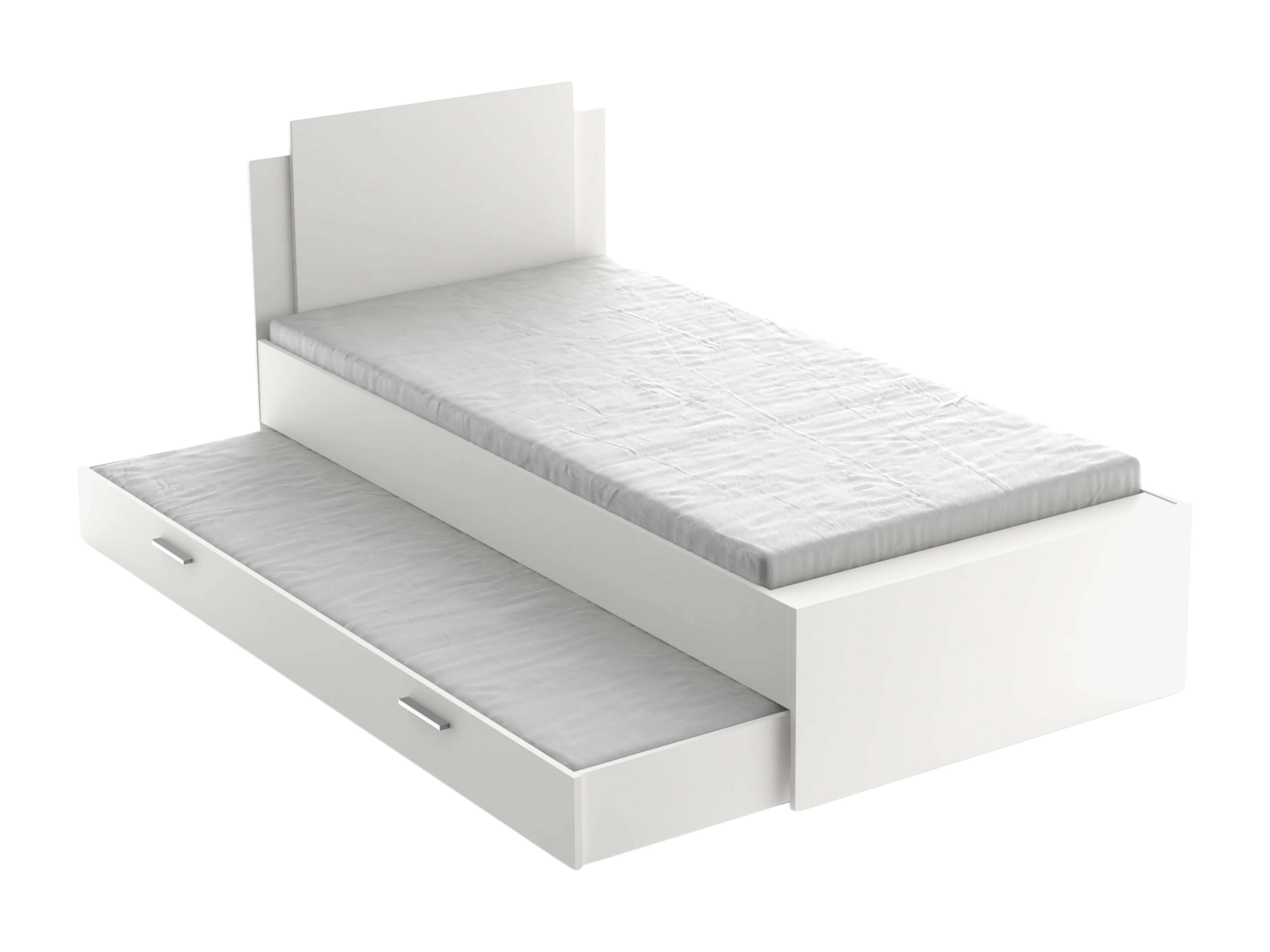 Cama tapizada de felpa 90x200 cm - con cama nido extraíble 90x190 cm - con somier de láminas de MDF - Blanco