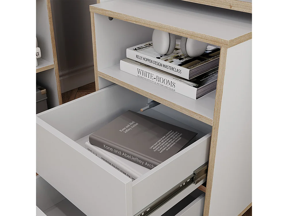 ESTANTERÍA MODERNA CON 4 CAJONES LOFT BLANCO CÓMODO ARMARIO DE OFICINA GRANDE 85 CM