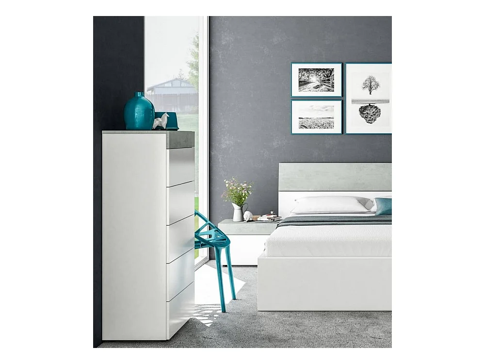 Cómoda Irving, Cómoda de 5 cajones, Cómoda para el dormitorio, Cómoda moderna, 61x40h118 cm, Blanco