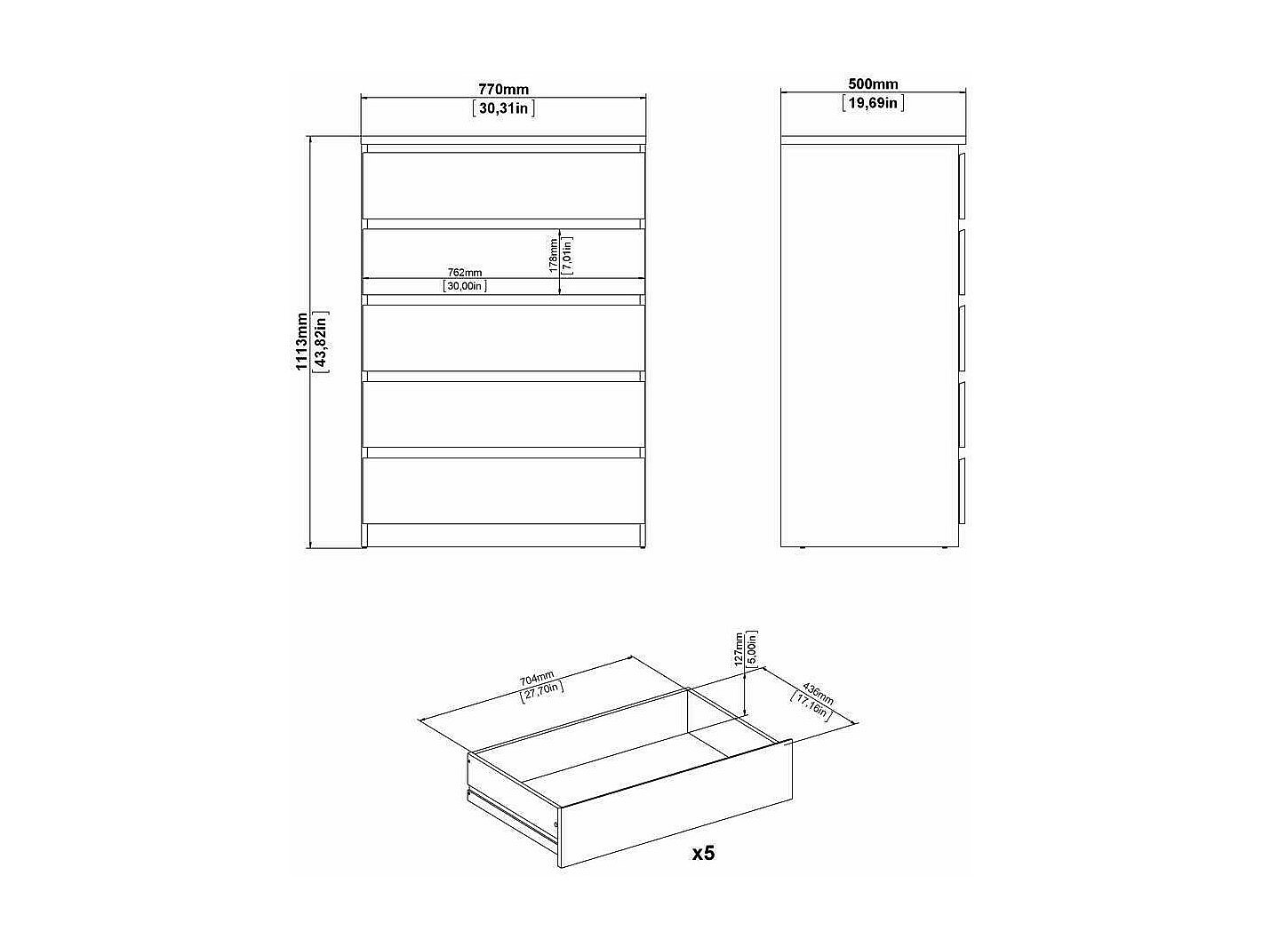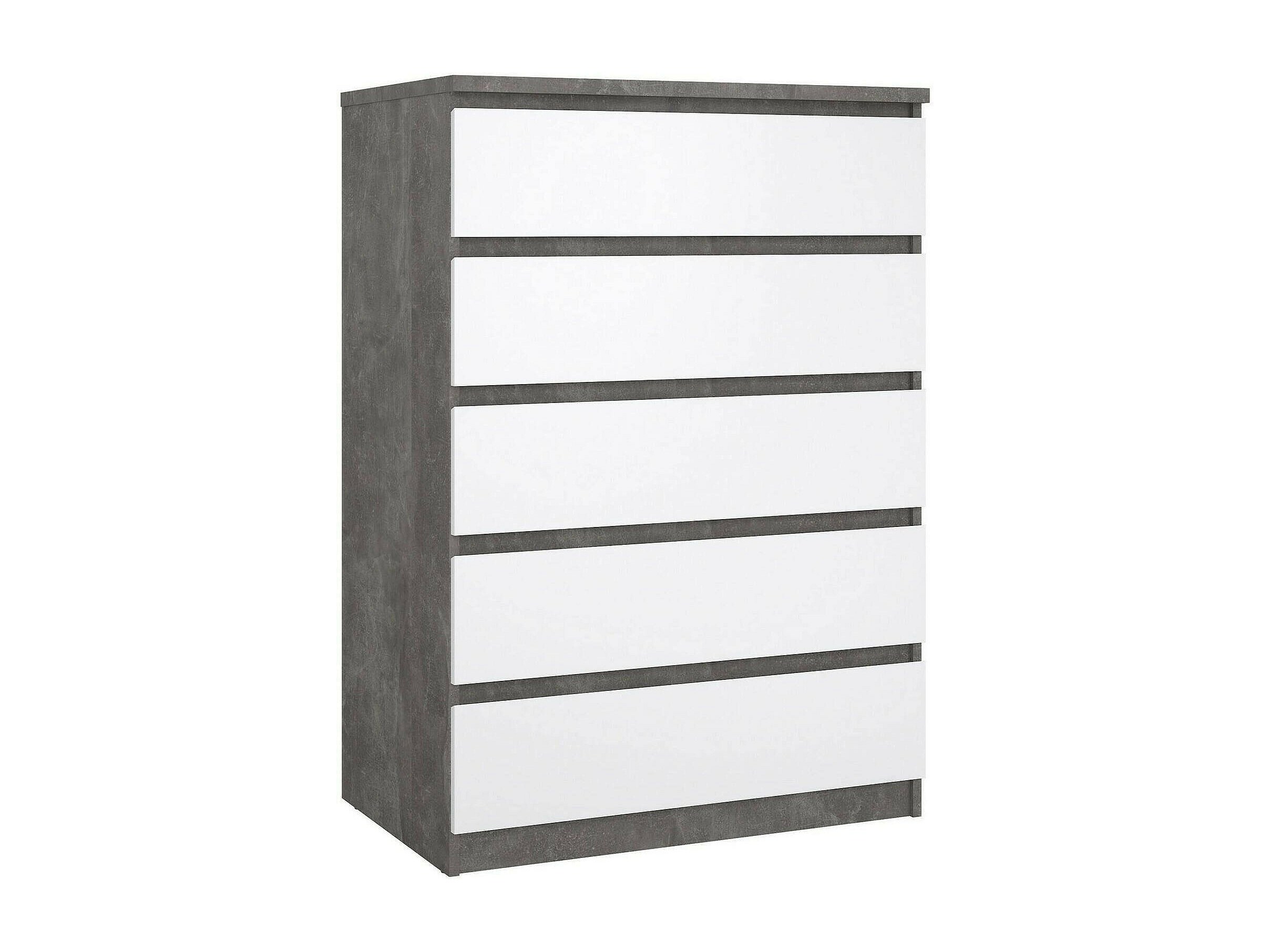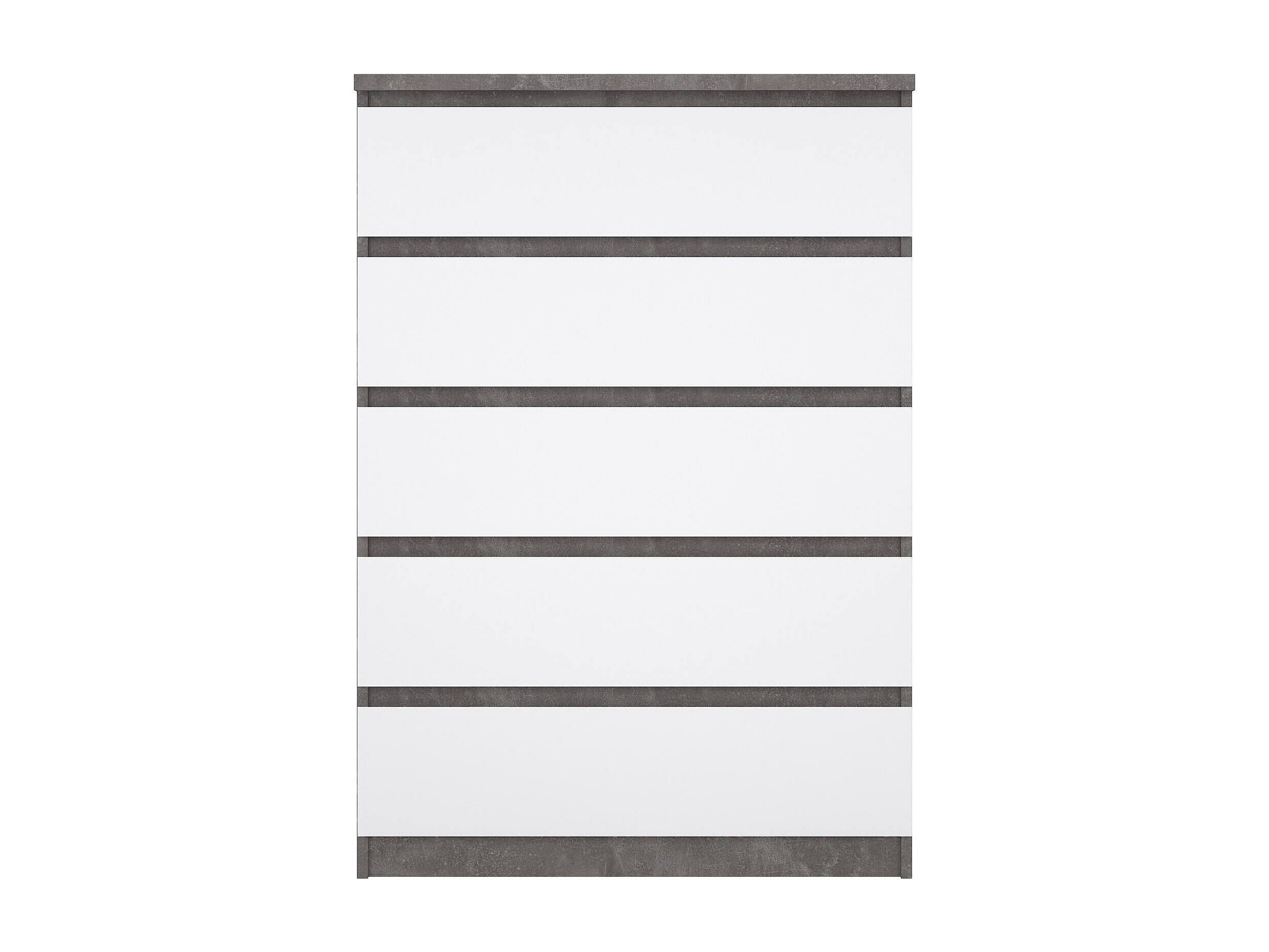 CAJONERA - Cómoda multiusos, Cómoda de dormitorio, Gabinete con cajones, 77x50 h111 cm, Cemento y Blanco. ESTRUCTURA Y USO - Cómoda con cajones - Cómoda baja multiusos, perfecta para amueblar un dormitorio, salón, dormitorio, recibidor o armario de forma práctica y elegante además de un armario - Los cajones son muy espaciosos, permitiéndote guardar en su interior todo lo que necesites de forma discreta y ordenada - Artículo de diseño moderno y funcional, en la superficie superior podrás colocar tus adornos favoritos para darle al producto un estilo personalizado para completar el mueble. CALIDAD Y DISEÃ'O - Mueble de diseño moderno y elegante, perfecto para amueblar un ambiente contemporáneo y luminoso - Ideal para quienes buscan funcionalidad y soluciones que ahorren espacio, este producto es perfecto para casas y pisos de todos los tamaños - Dos años de garantía a partir de la fecha de compra. CARACTERÃSTICAS TÉCNICAS - Accesorio de decoración versátil, diseñado para una fácil integración con otros muebles - Embalaje resistente, diseñado para eCommerce - Material: Panel de virutas melamínico - Más información: Artículo certificado EPA 40 CFR TSCA - Liberación de formaldehído que cumple con las directivas IOS/MAT/0181/EN 16910 - Desmontado - Equipado con kit de montaje - Cinco cajones. DIMENSIONES EN CM - Cajonera : Longitud: 77 Anchura: 50 Altura: 111,3 - Dimensiones adicionales: Apertura del cajón: 33 cm