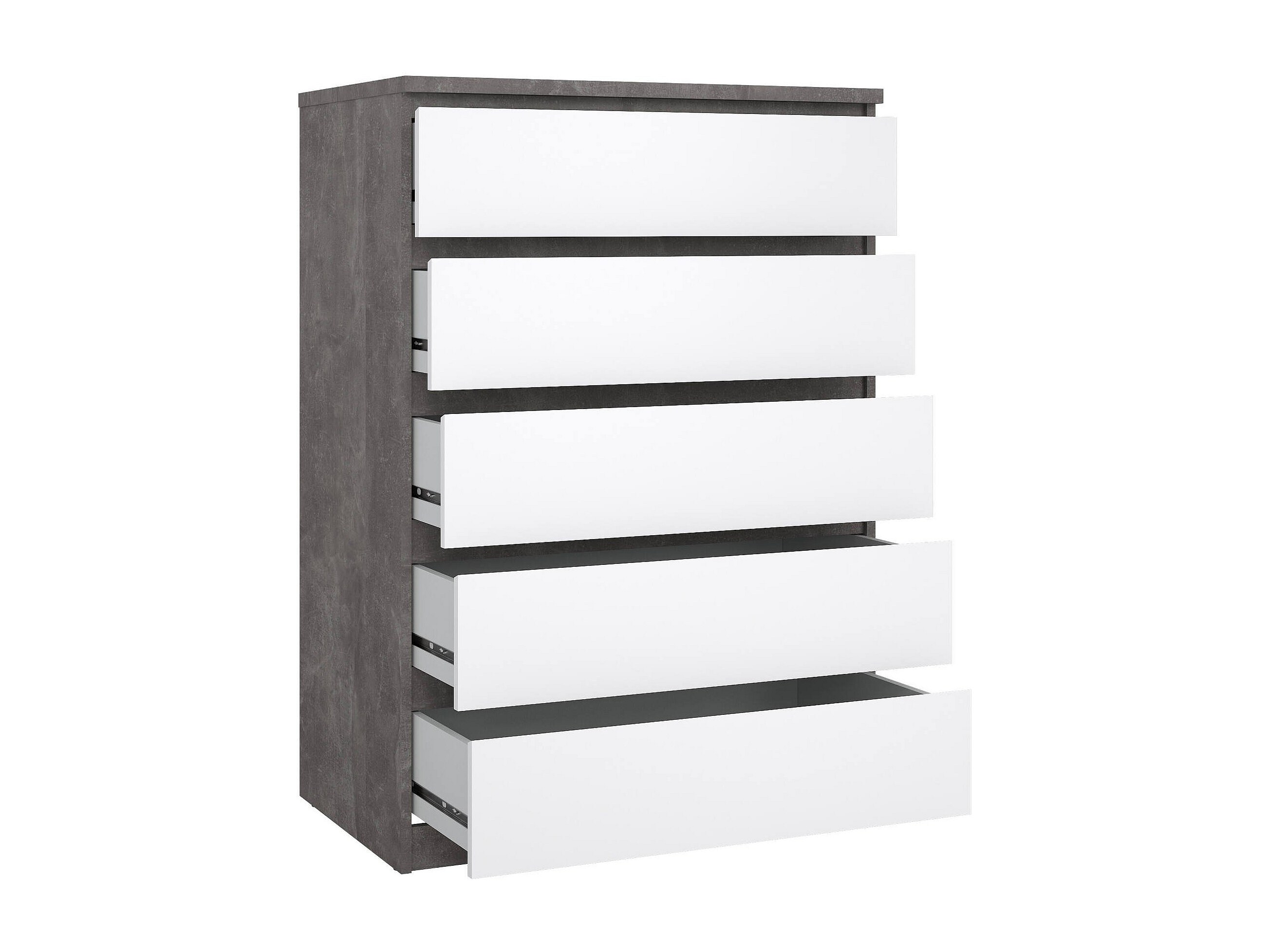 Cajonera Drivalt, Cómoda multiusos, Cómoda de dormitorio, Gabinete con cajones, 77x50 h111 cm, Cemento y Blanco