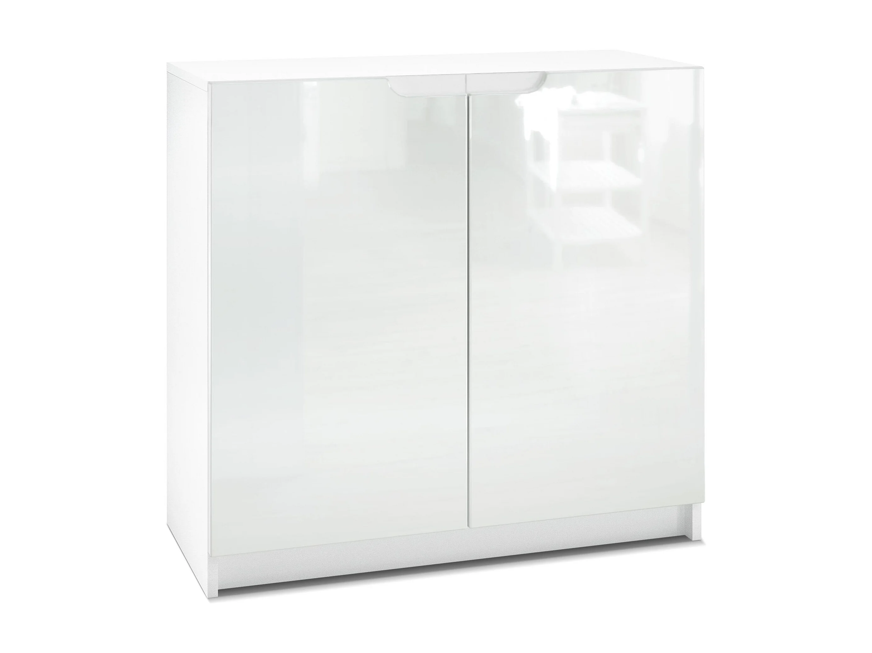 Cajonera Logan, Cómoda con 2 Puertas, blanco mate/blanco de alto brillo (82 x 78 x 37 cm)