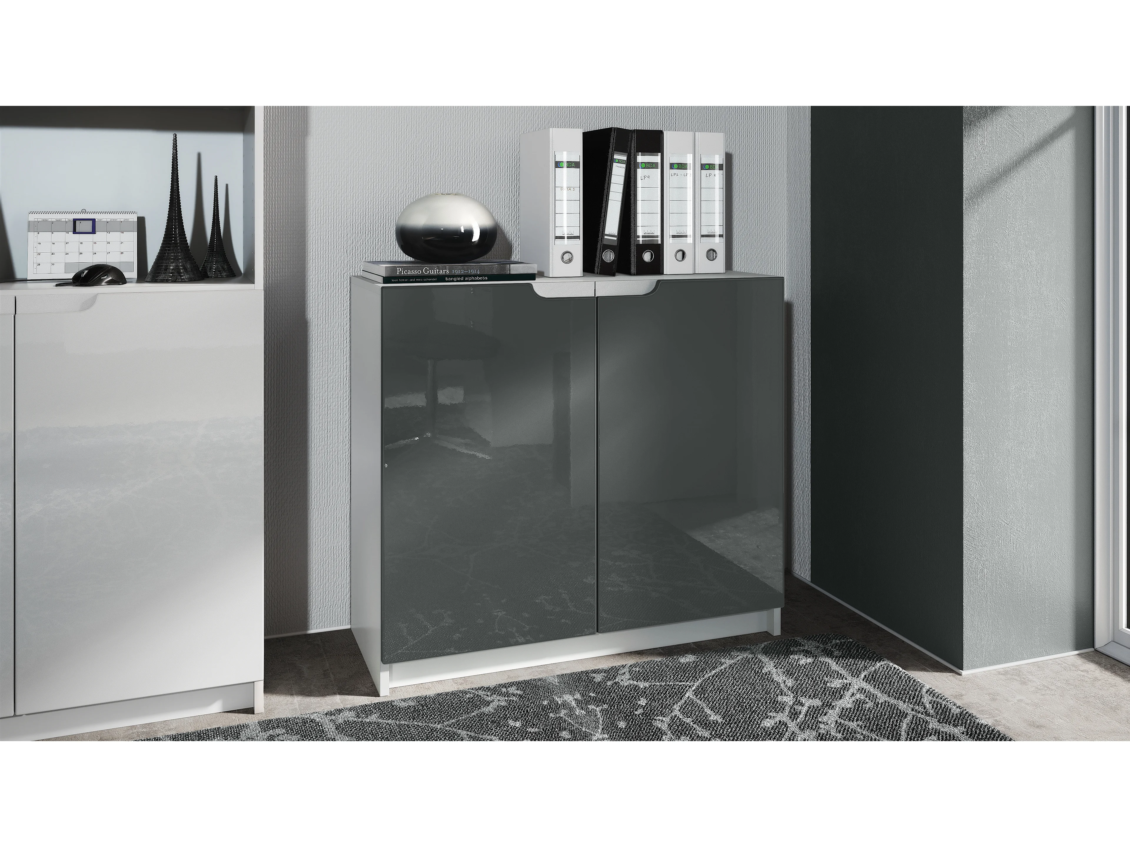 Cajonera Logan, Cómoda con 2 Puertas, blanco mate/gris de alto brillo (82 x 78 x 37 cm)