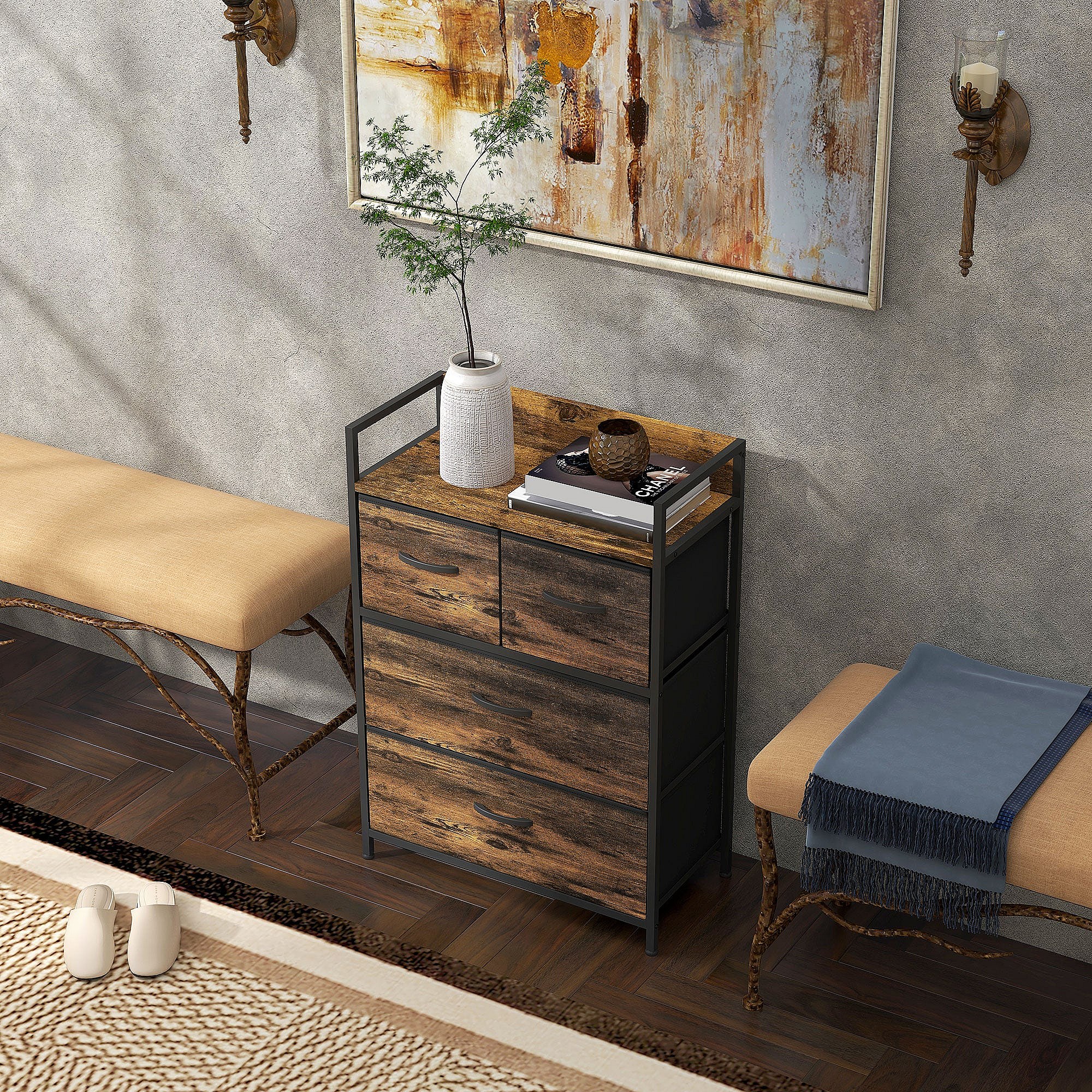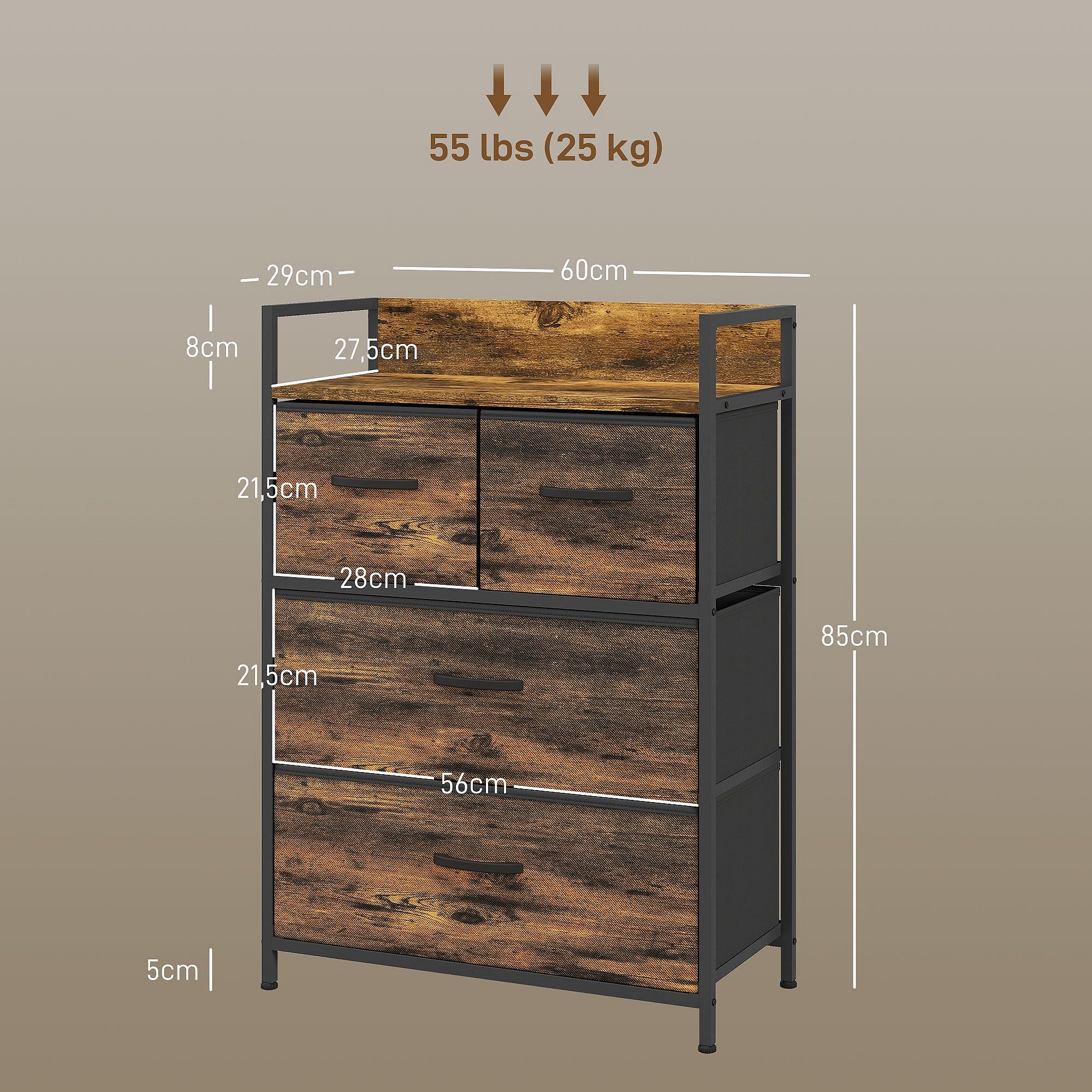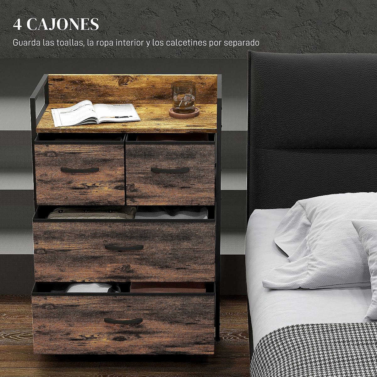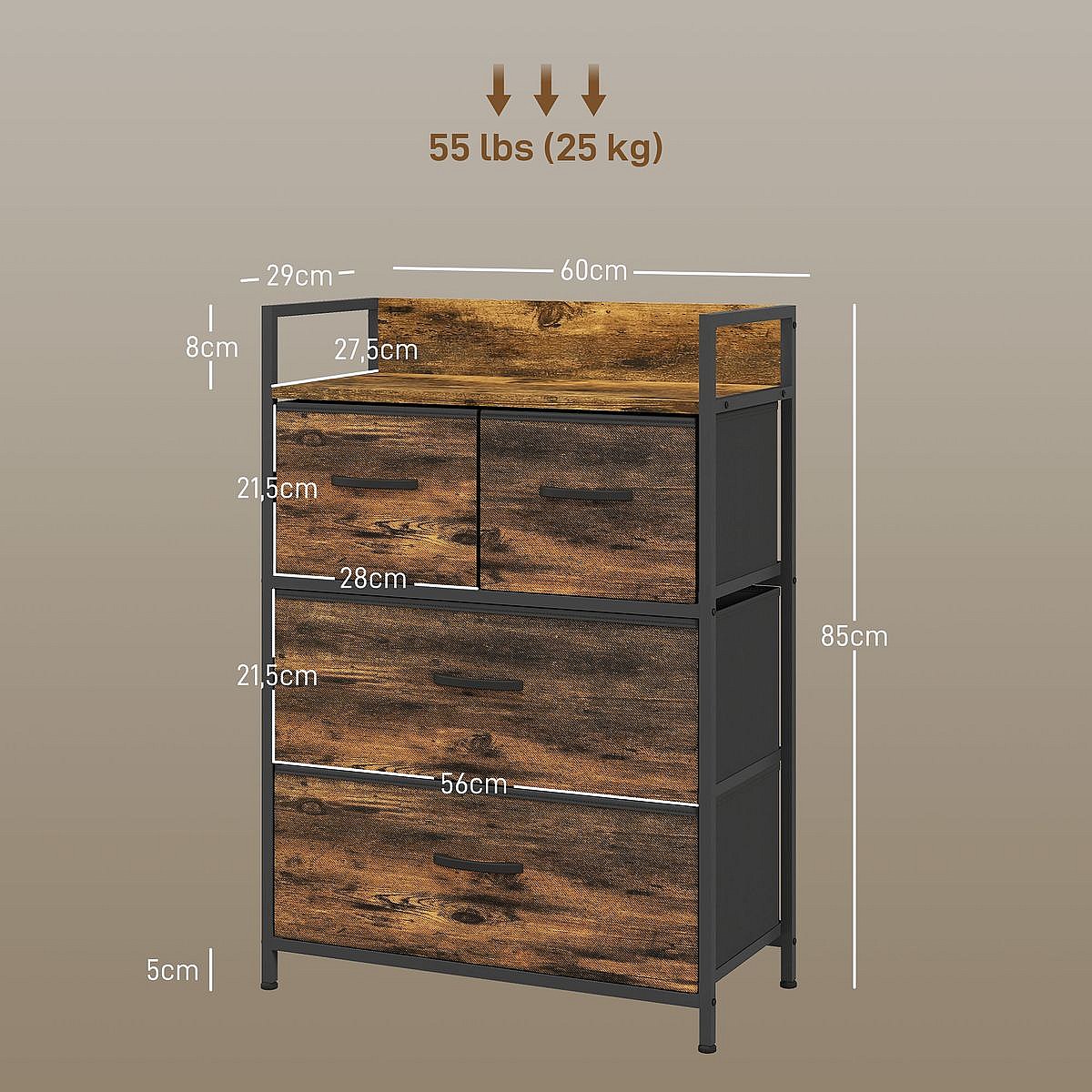 Cajonera Malta Homcom 4 cajones de tela marrón oscuro 85x60x29 cm