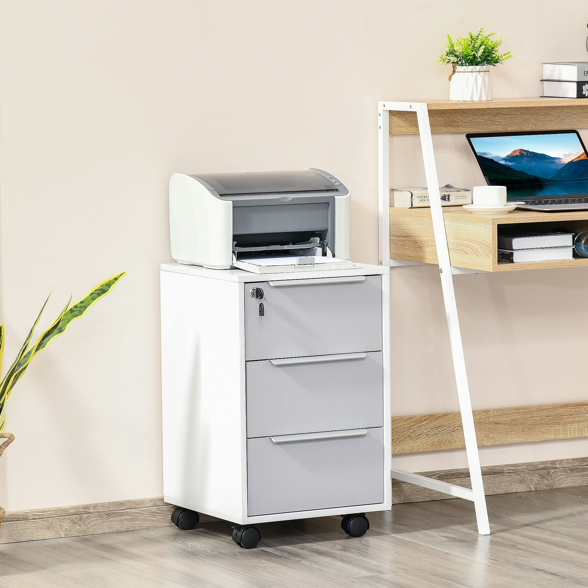 Cajonera tipo archivador blanco y gris 40x40x63.5 cm HOMCOM