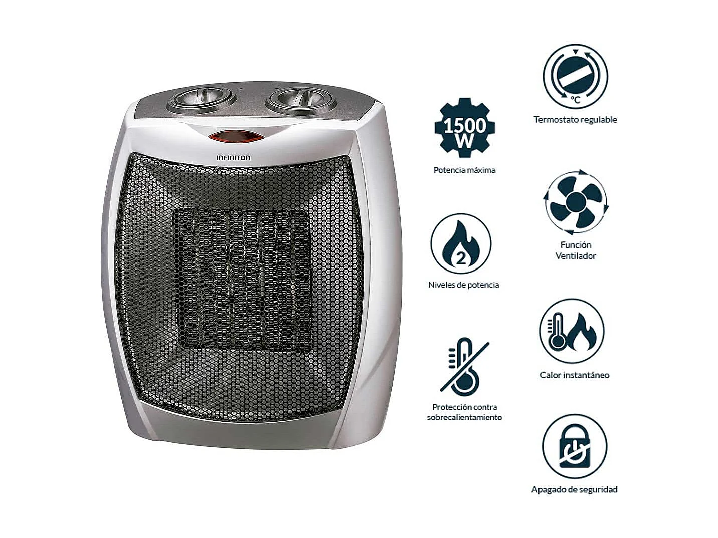 Calefactor ventilador Infiniton HPTC-902C 1500W termostato regulable gris