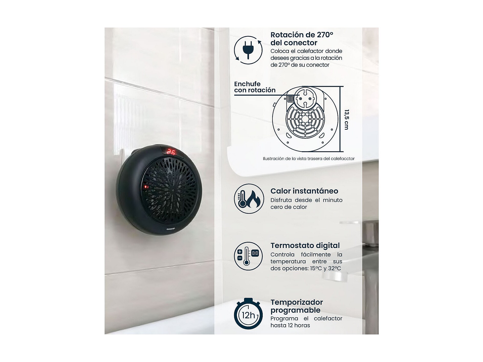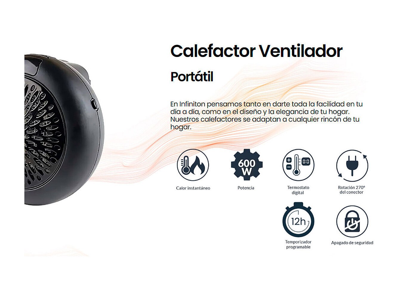 Calefactor ventilador Infiniton HWS-6AC 600W display LED negro