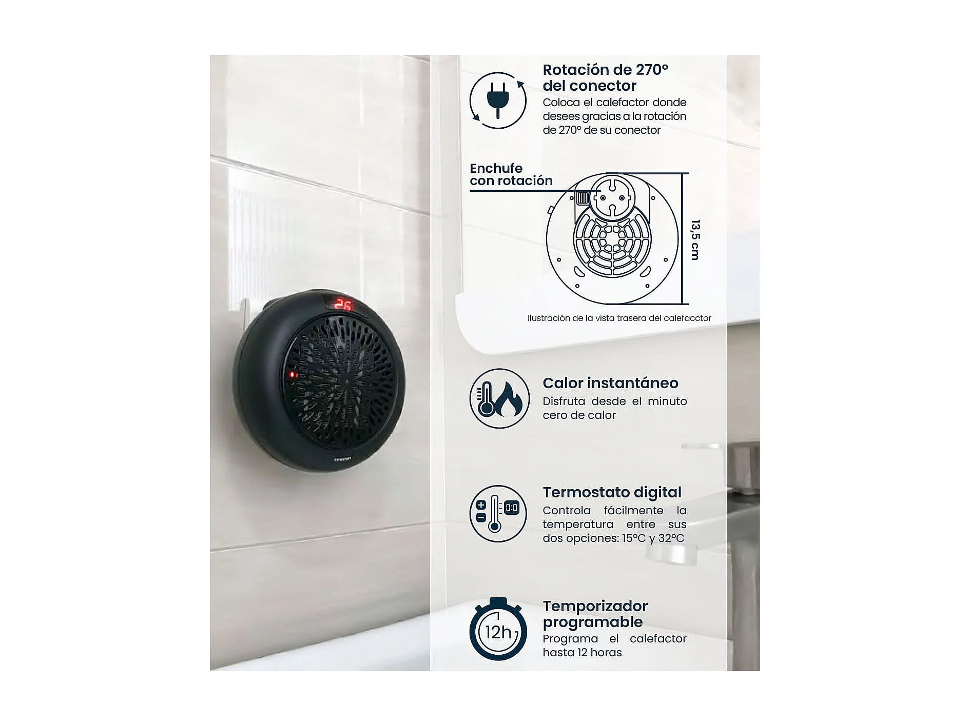 Calefactor ventilador Ufesa Atlas Neo 2000W 3 potencias negro