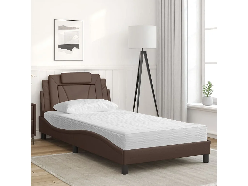 Cama 100x200 cm con colchón cuero sintético marrón ES187648