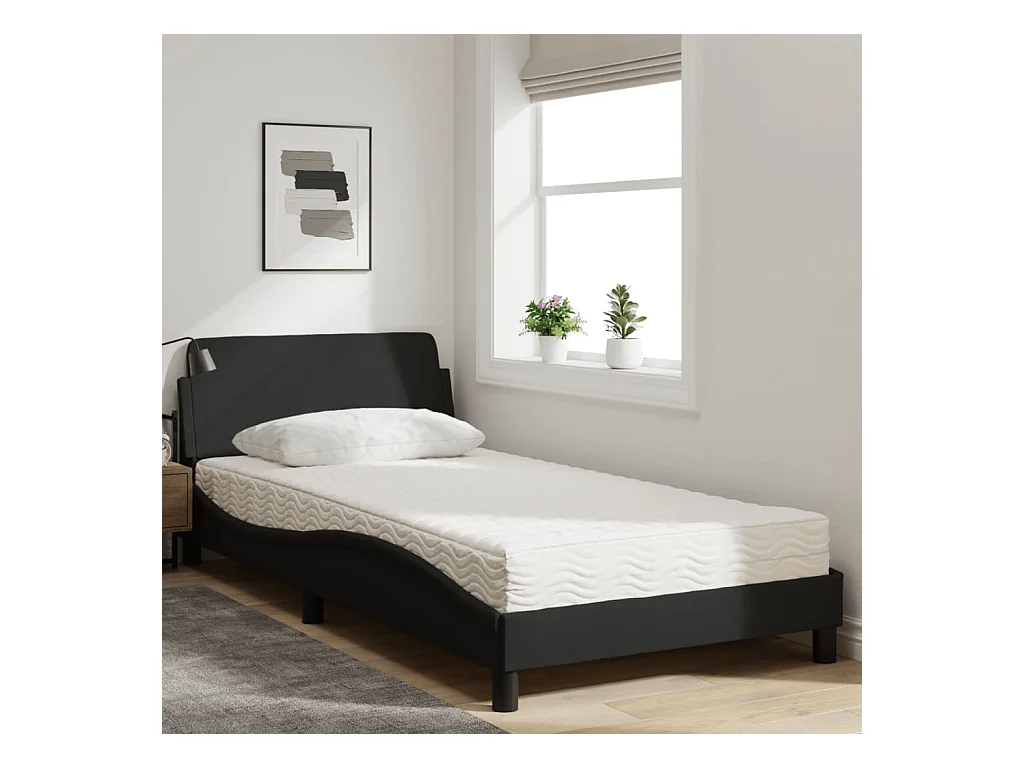 Cama 100x200 cm con colchón tela negro ES157248