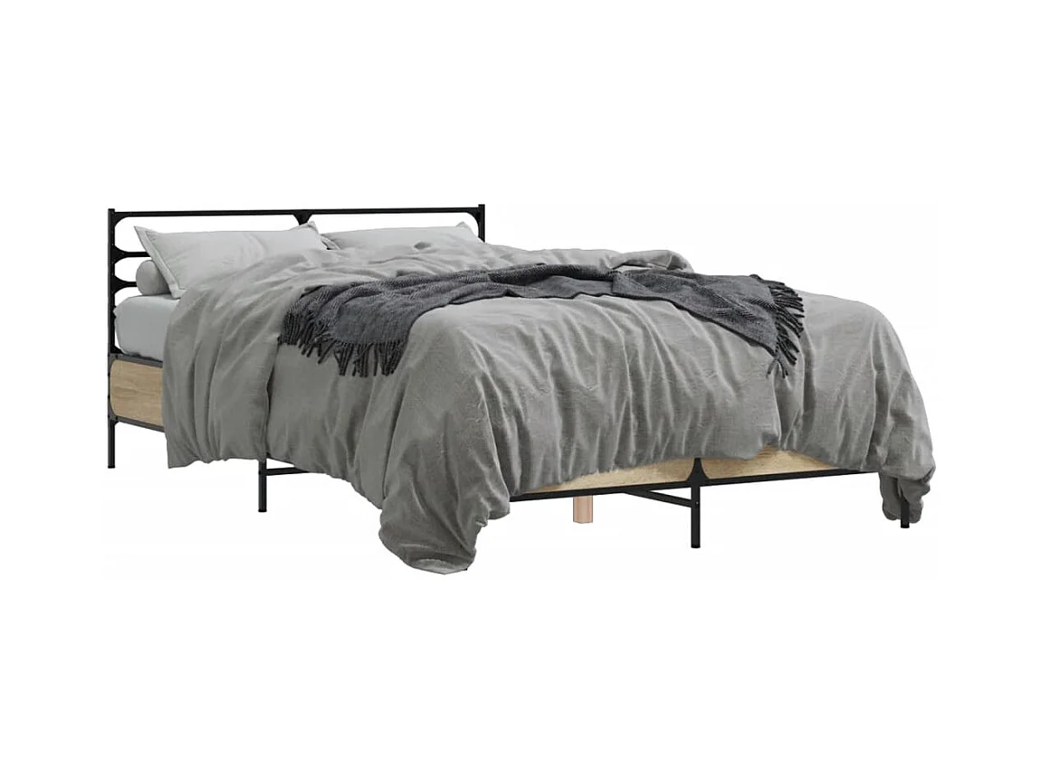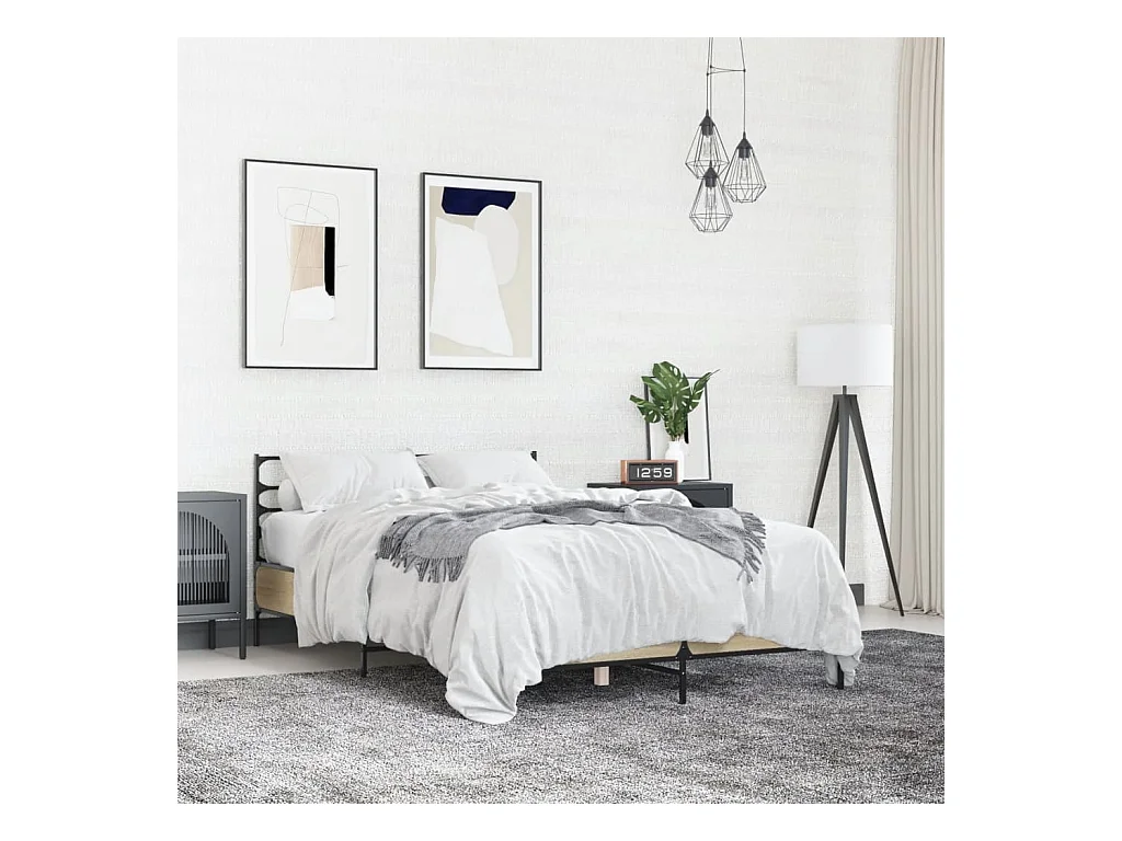 Cama 120x190 cm - madera ingeniería metal roble Sonoma ES126000