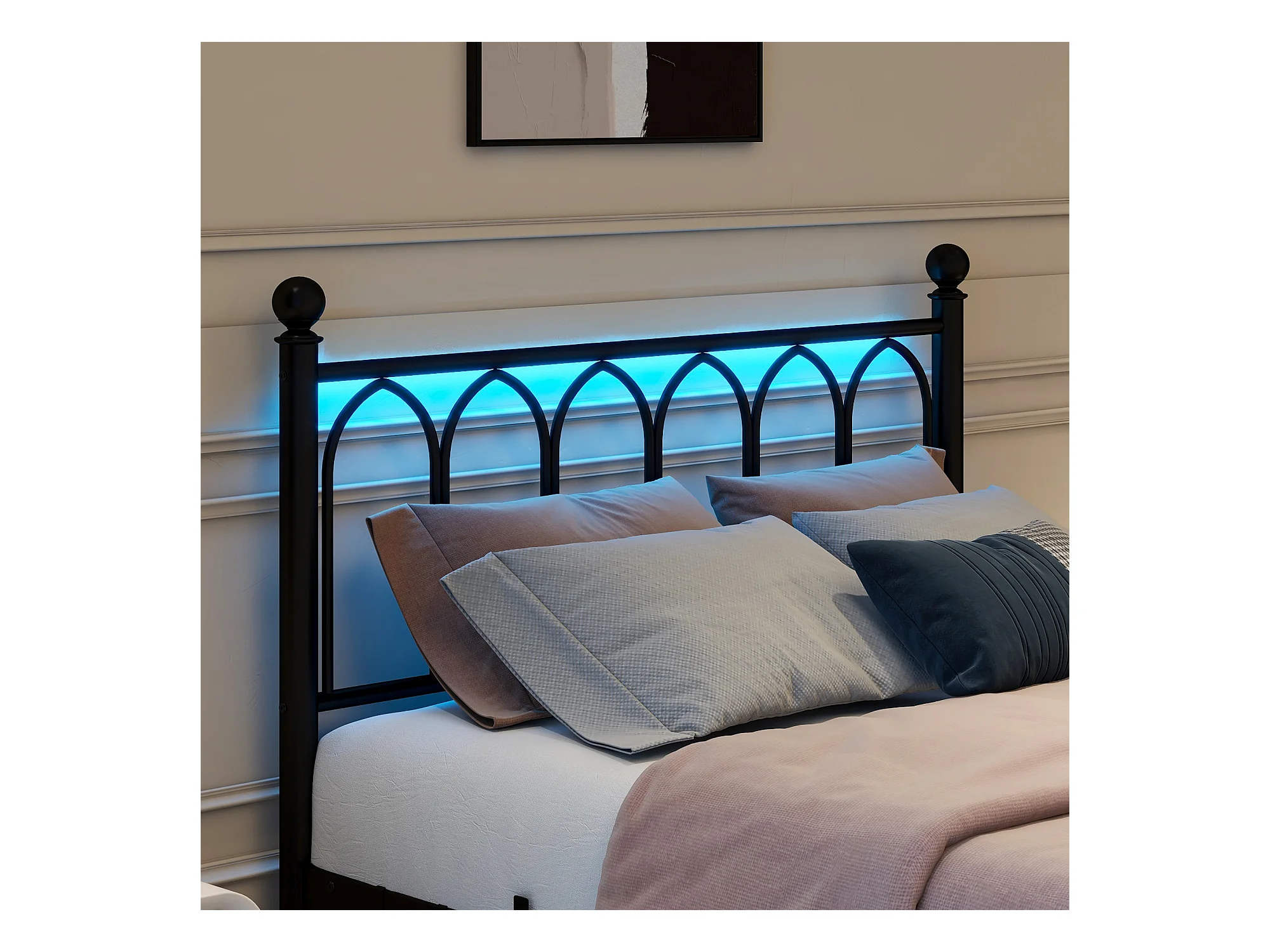 Cama 120x200 cm cabezal y pie de metal vintage LED USB almacenaje negro