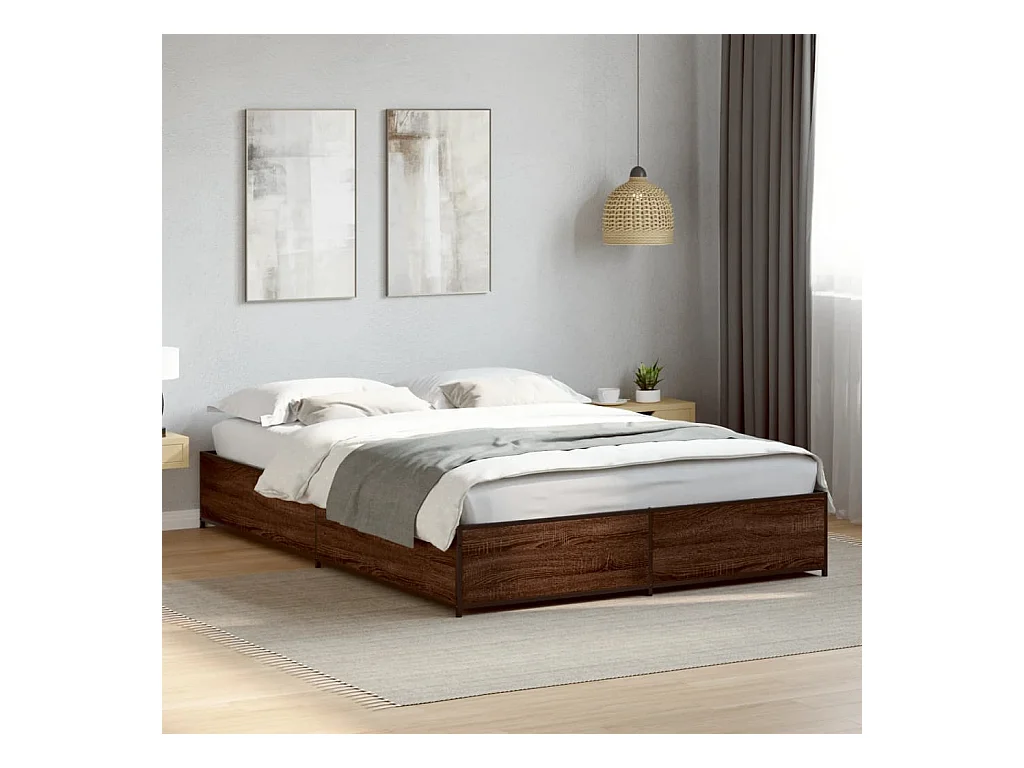 Cama 120x200 cm - madera ingeniería metal marrón roble ES801731