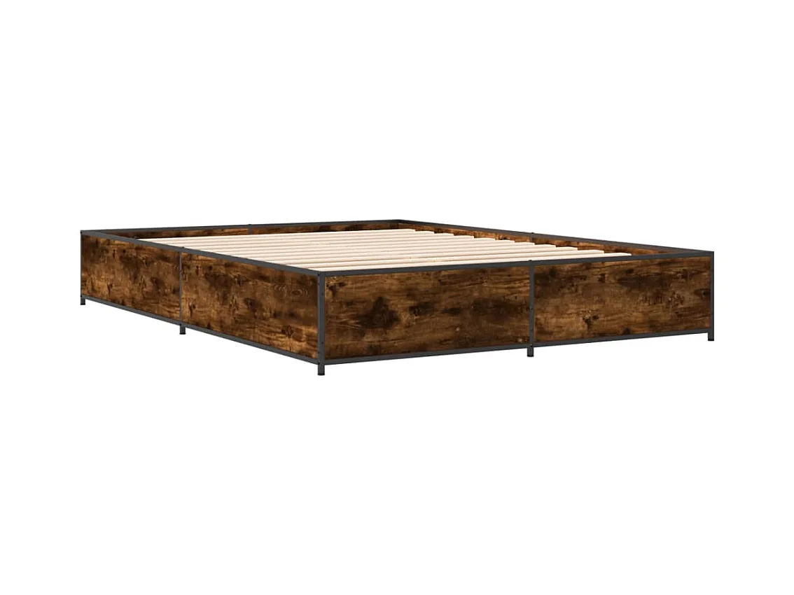 Cama 120x200cm - madera ingeniería metal roble ahumado ES114810