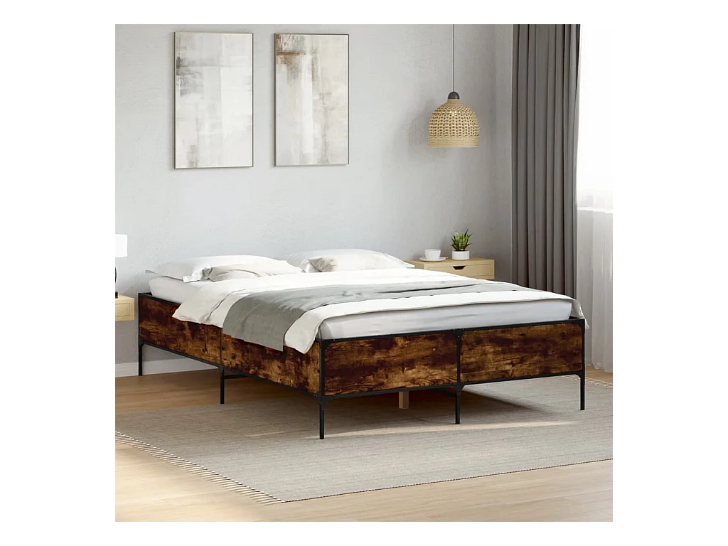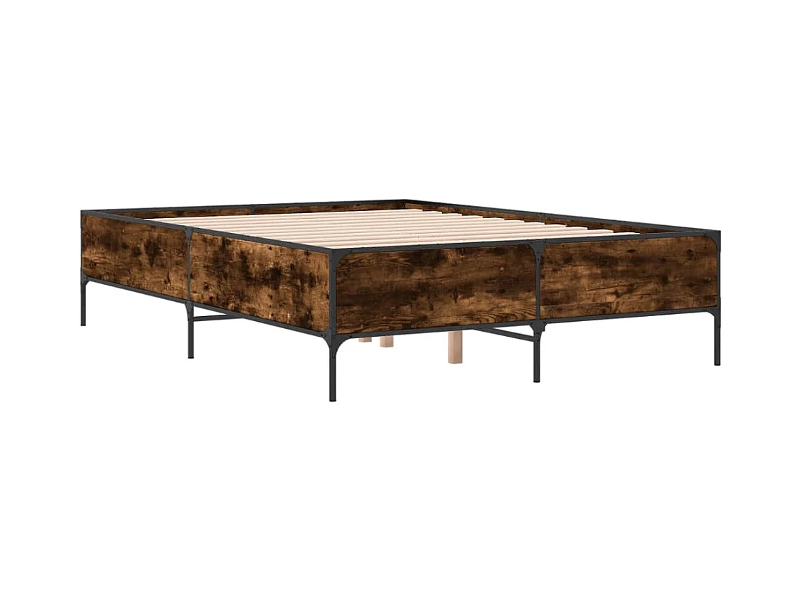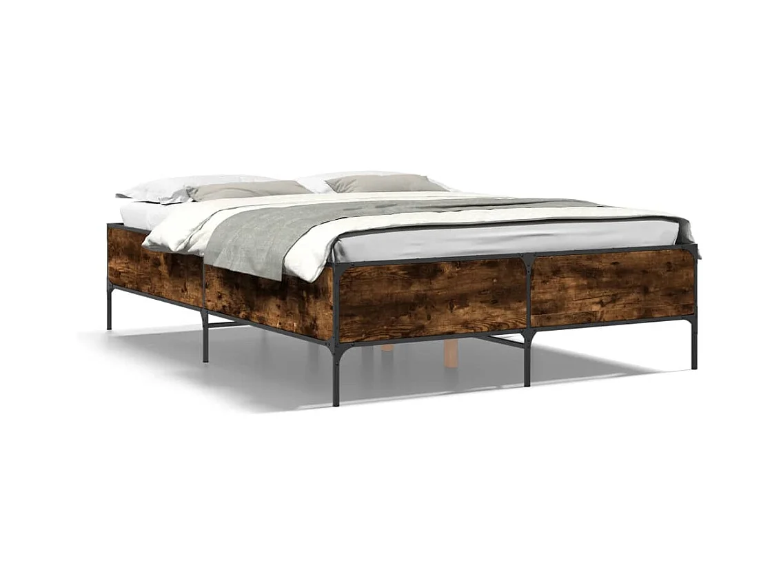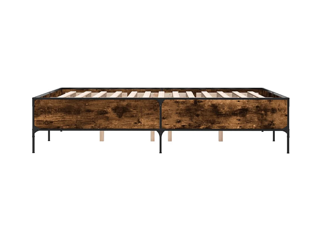 Cama 120x200cm - madera ingeniería metal roble ahumado ES330011