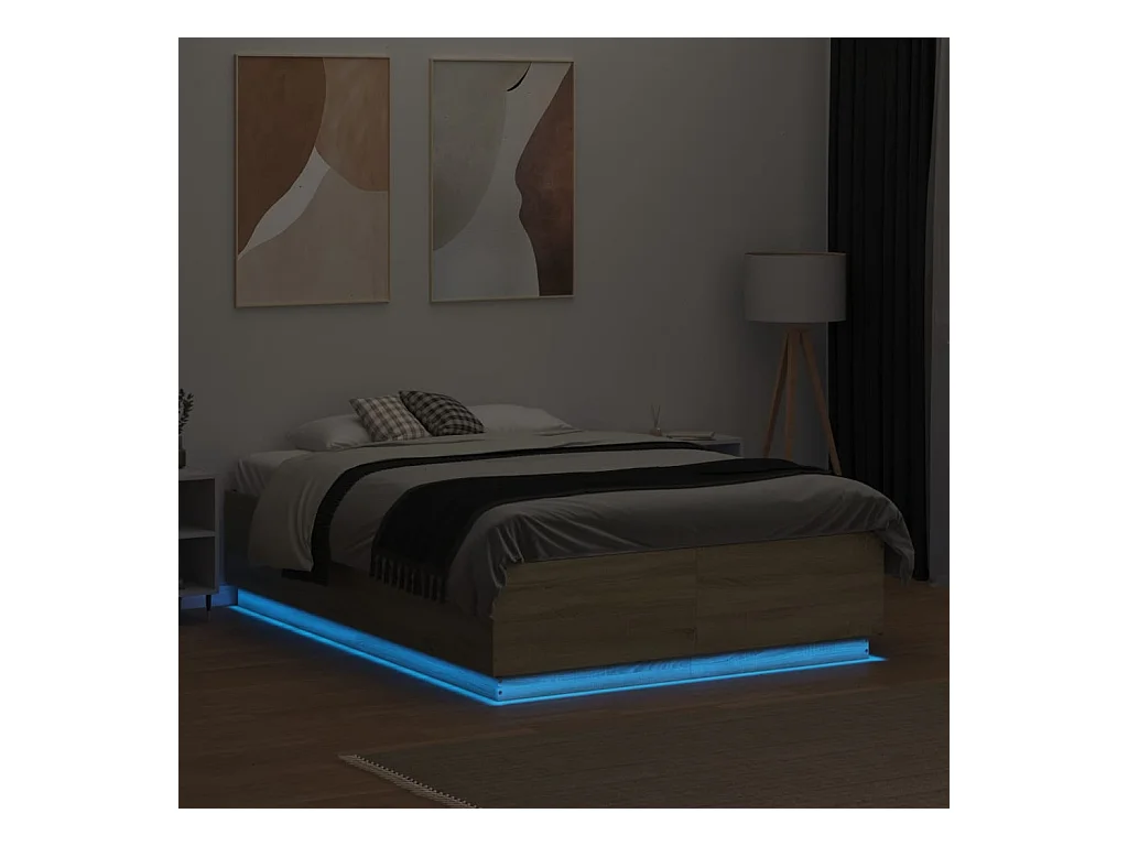 Cama 135x190 cm - con luces LED madera roble Sonoma ES811390