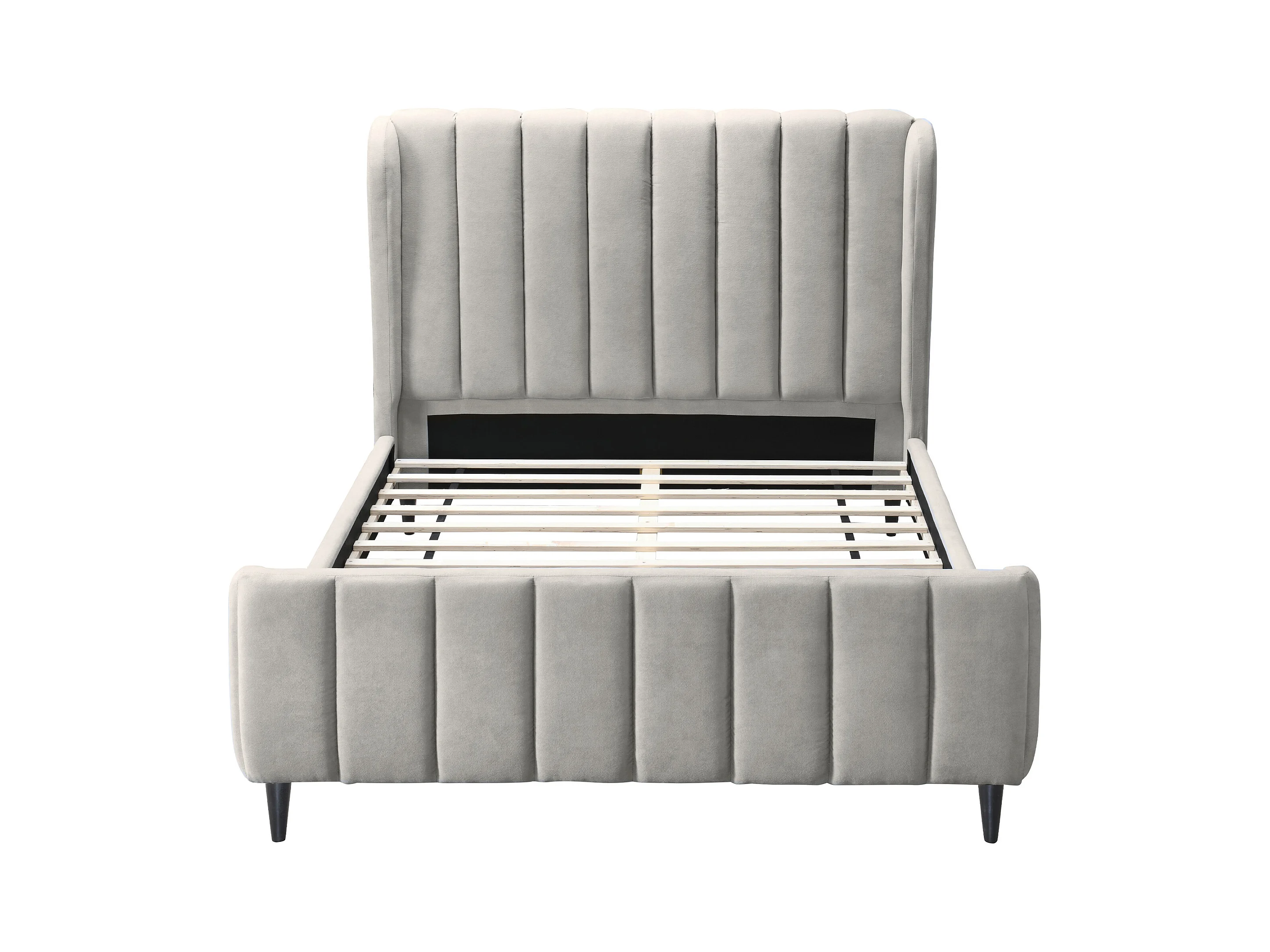 Cama 140 x 190 cm - Tela con costuras verticales - Gris claro + Colchón - CASAGOTI