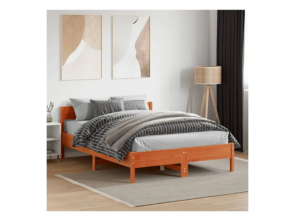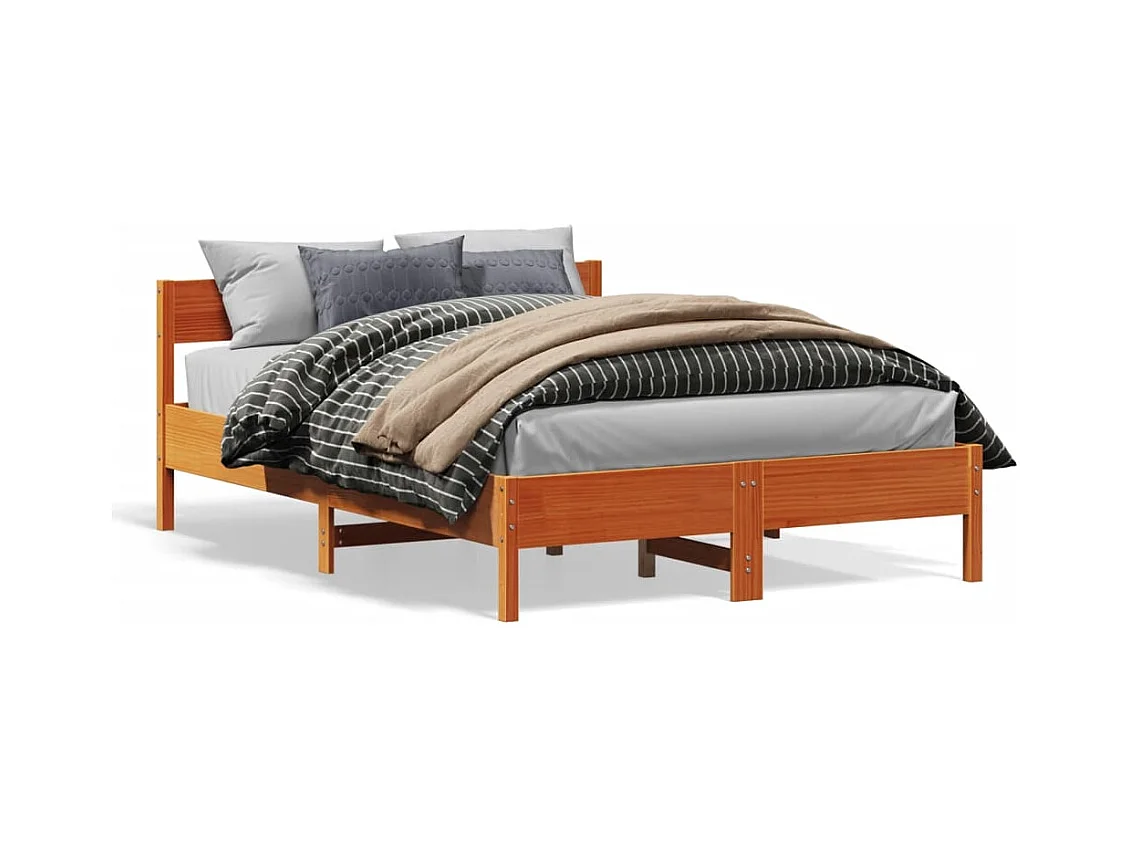 Cama 140x190 cm sin colchón madera maciza de pino marrón cera ES619493