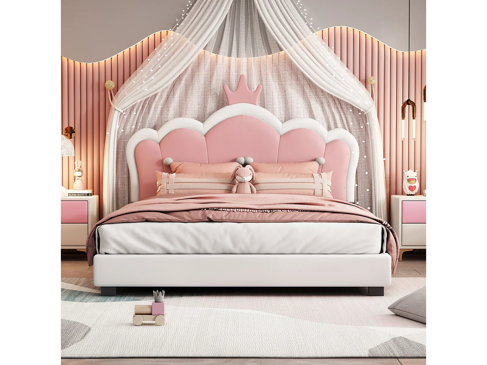 Cama 140x200cm - Cama Infantil con Cabecero Corona + Somier de Láminas - Blanco