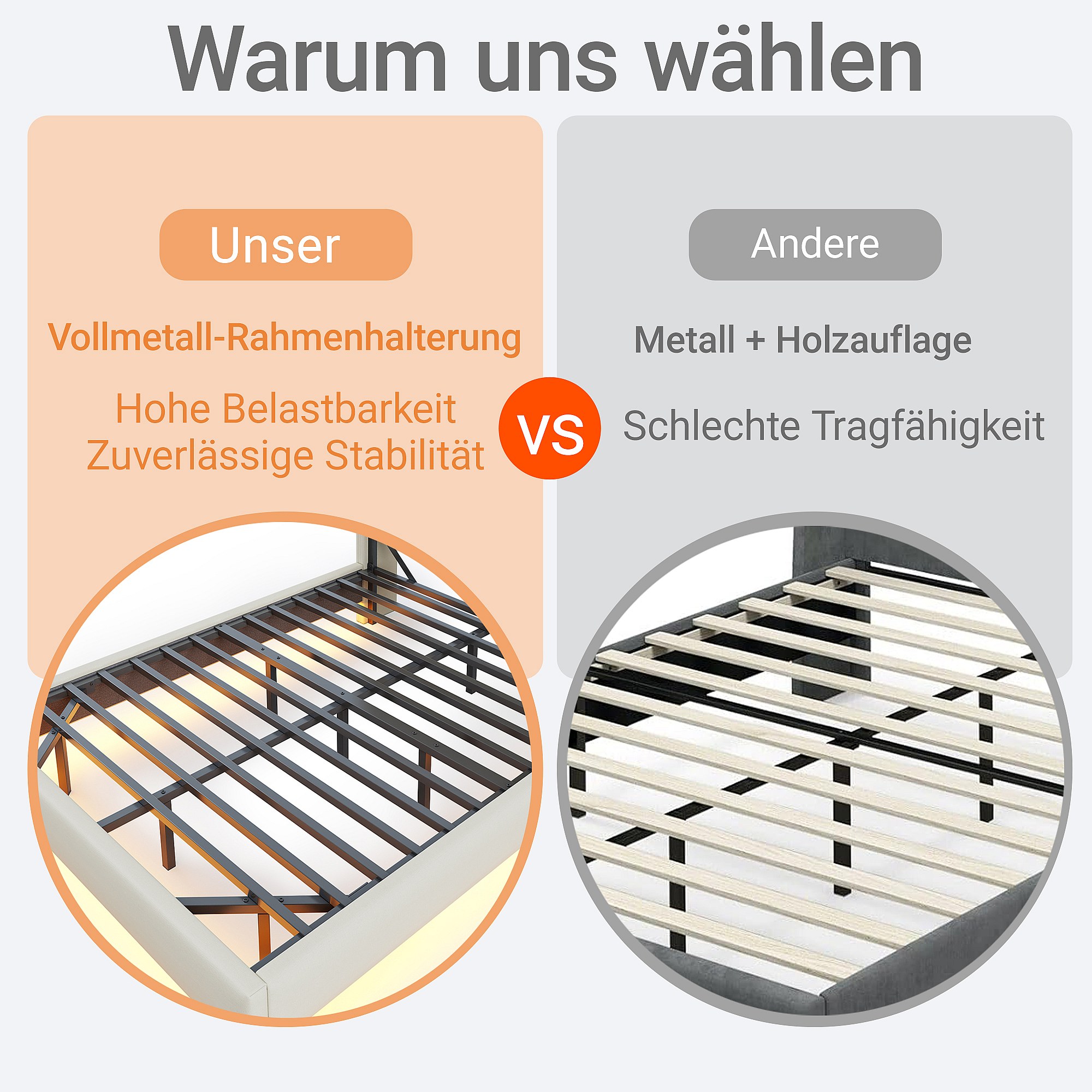 Cama tapizada LED con 2 cajones, cabecero regulable, madera, beige (99x207x102cm)