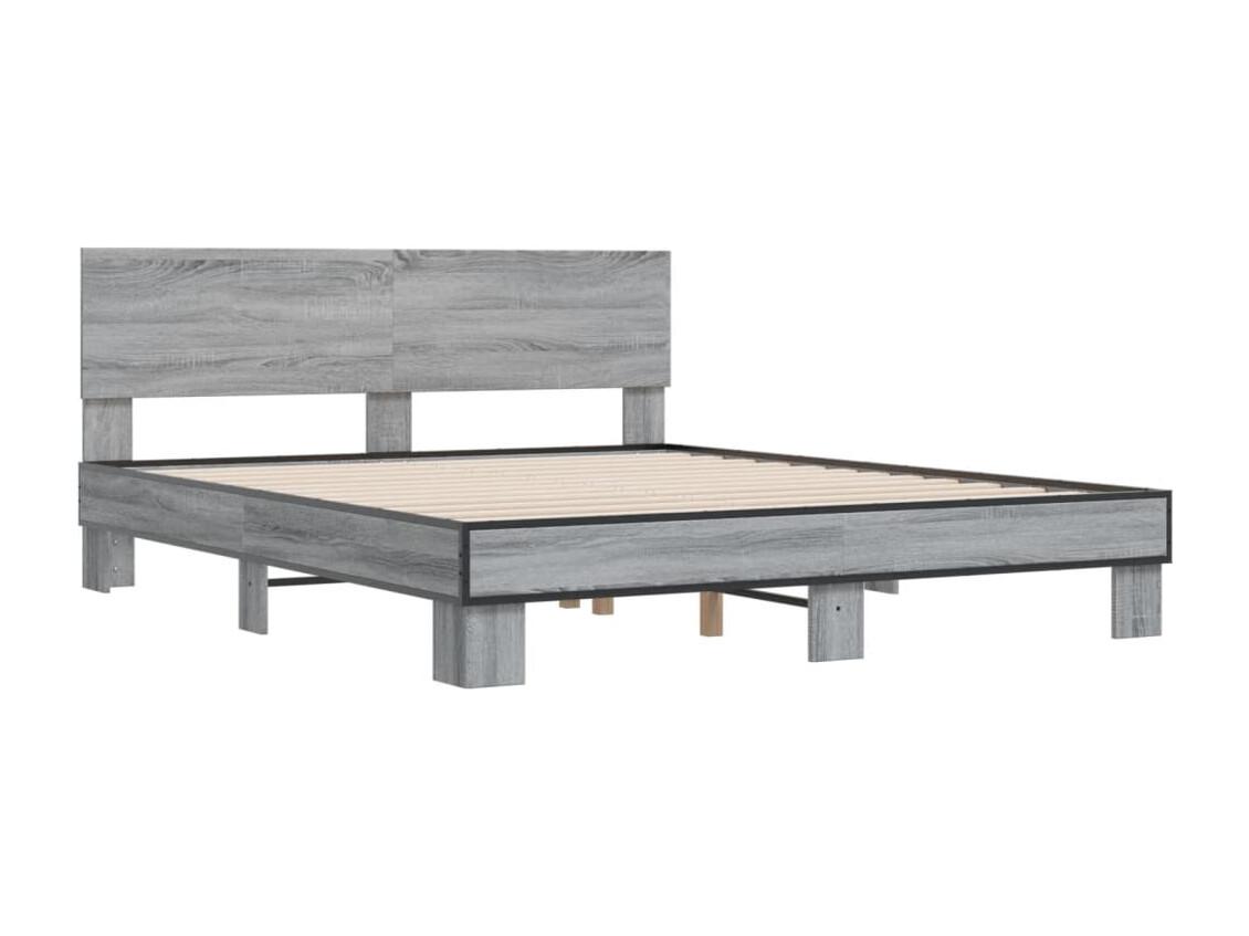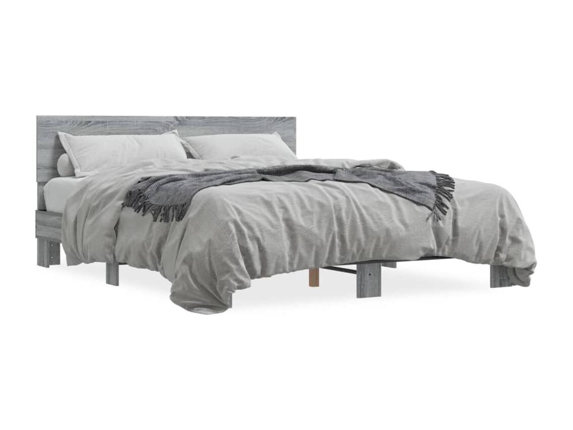 Cama 150x200 cm - madera ingeniería metal gris Sonoma ES135887