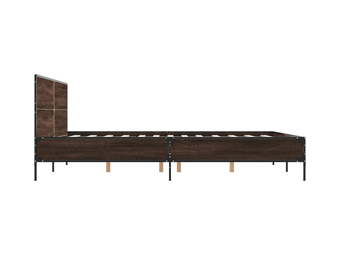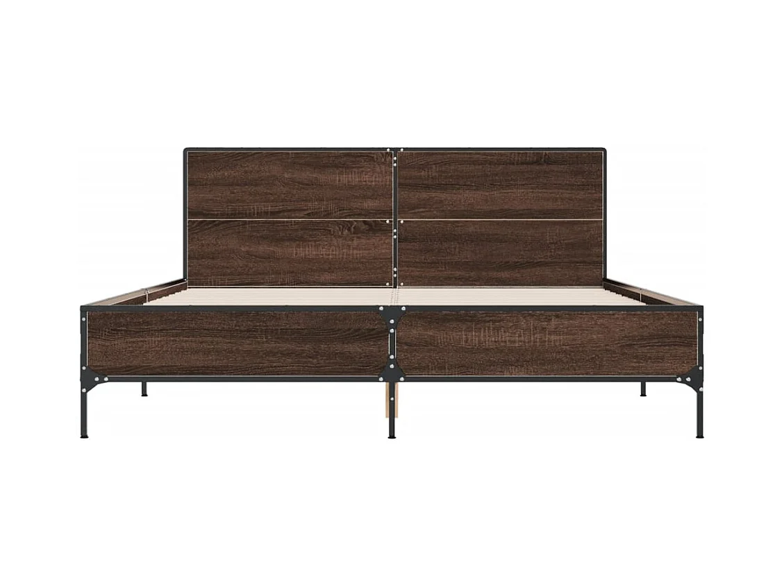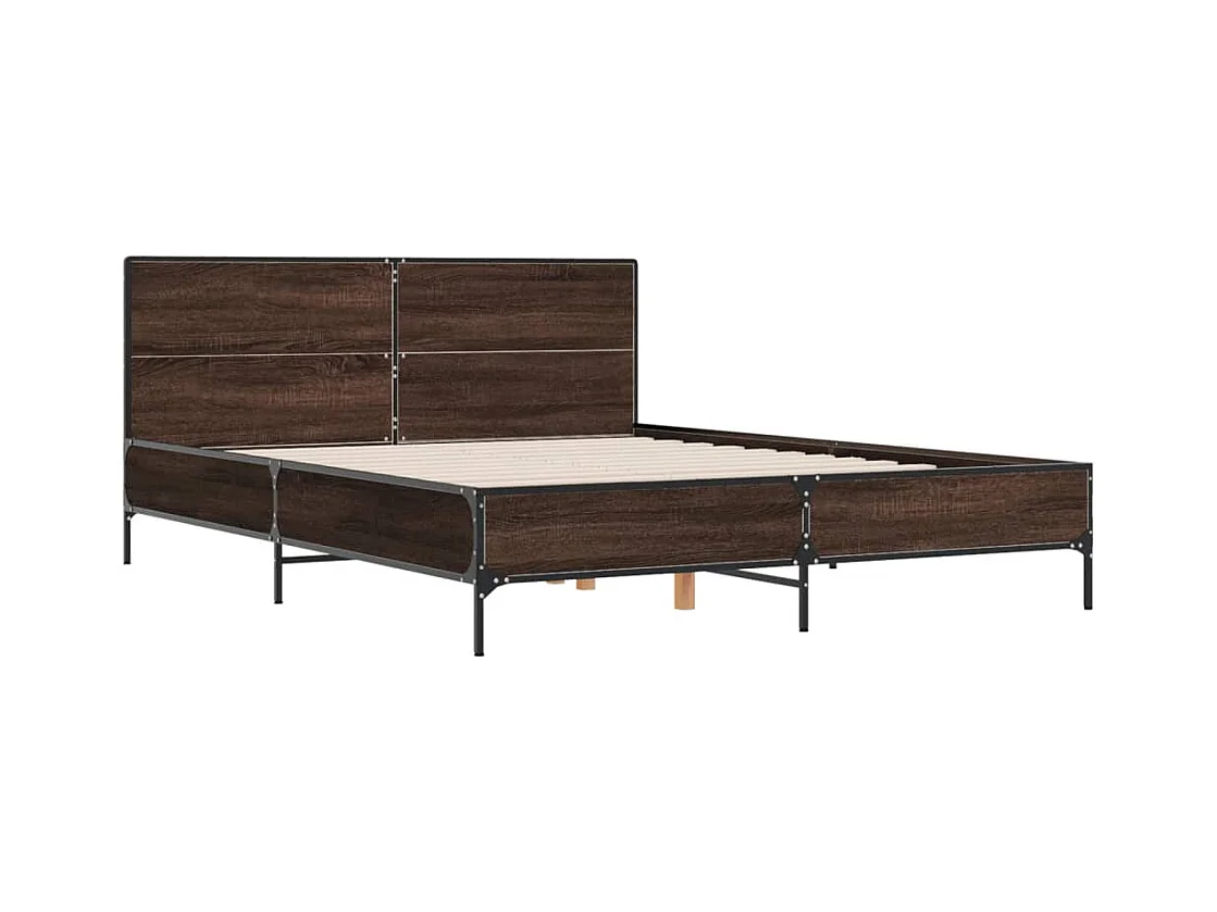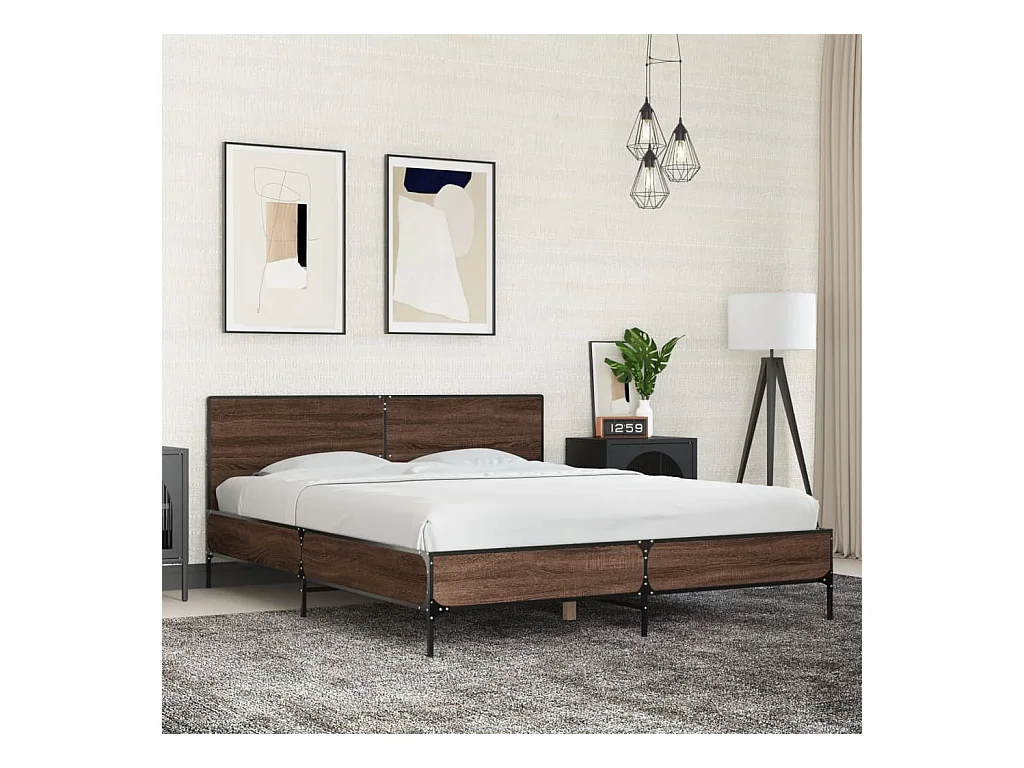 Cama 150x200 cm - madera ingeniería metal marrón roble ES788928