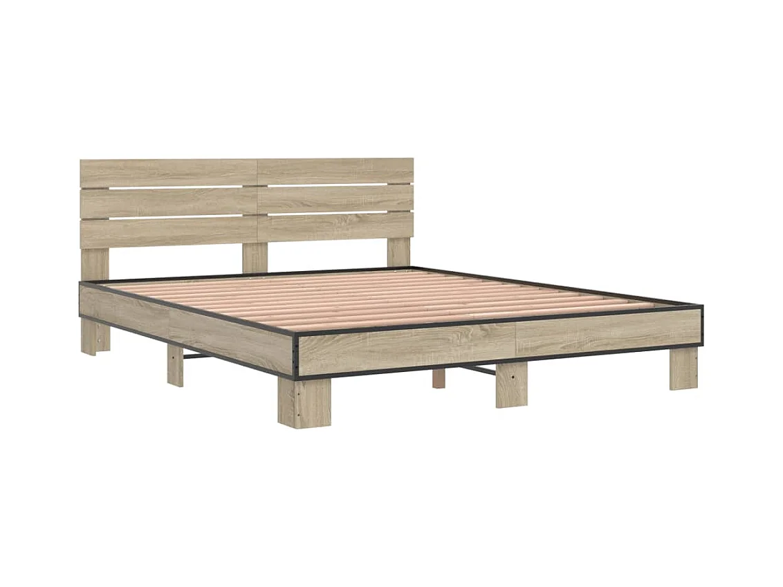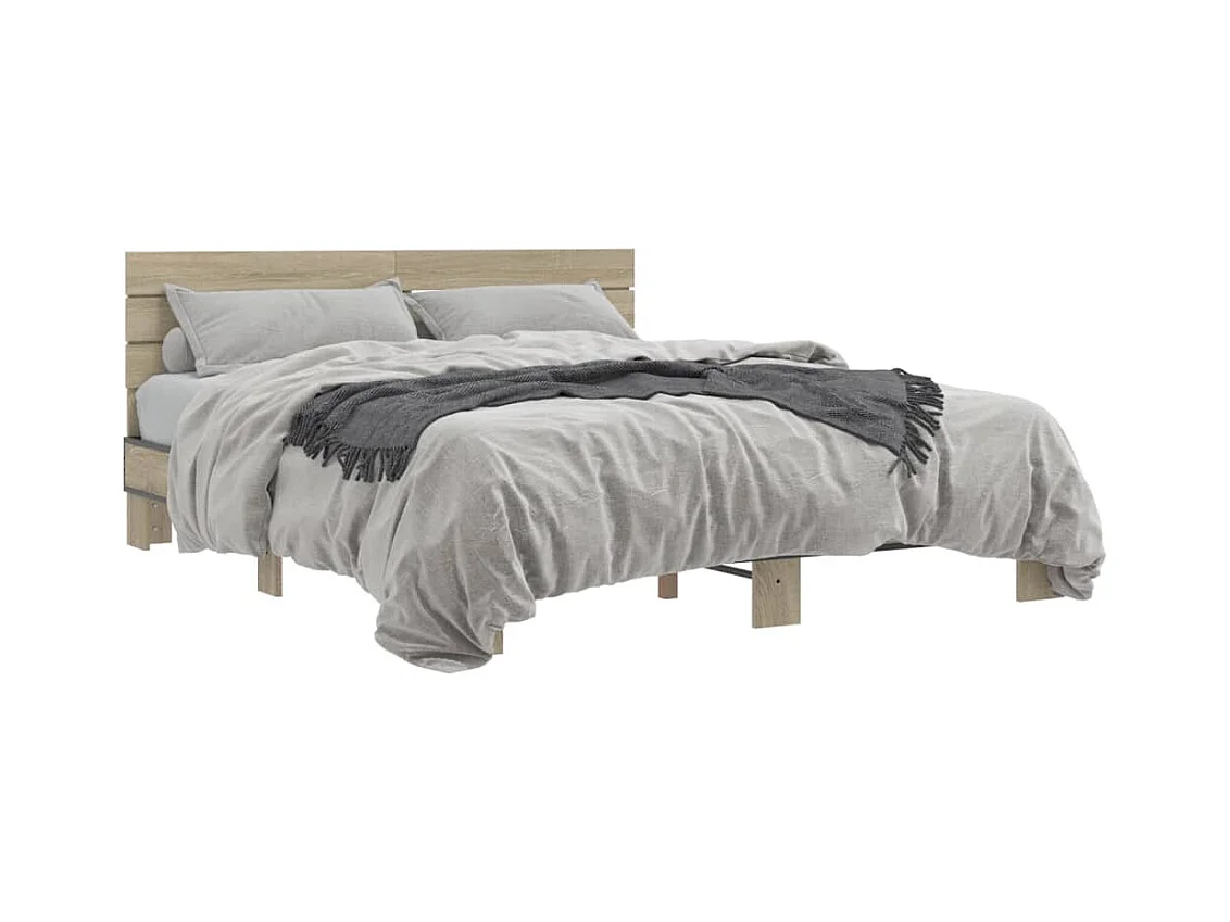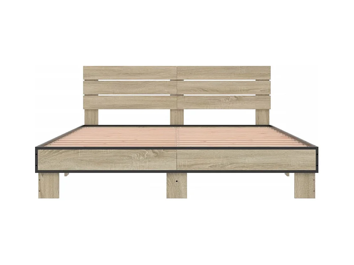 Cama 150x200 cm - madera ingeniería metal roble Sonoma ES322242