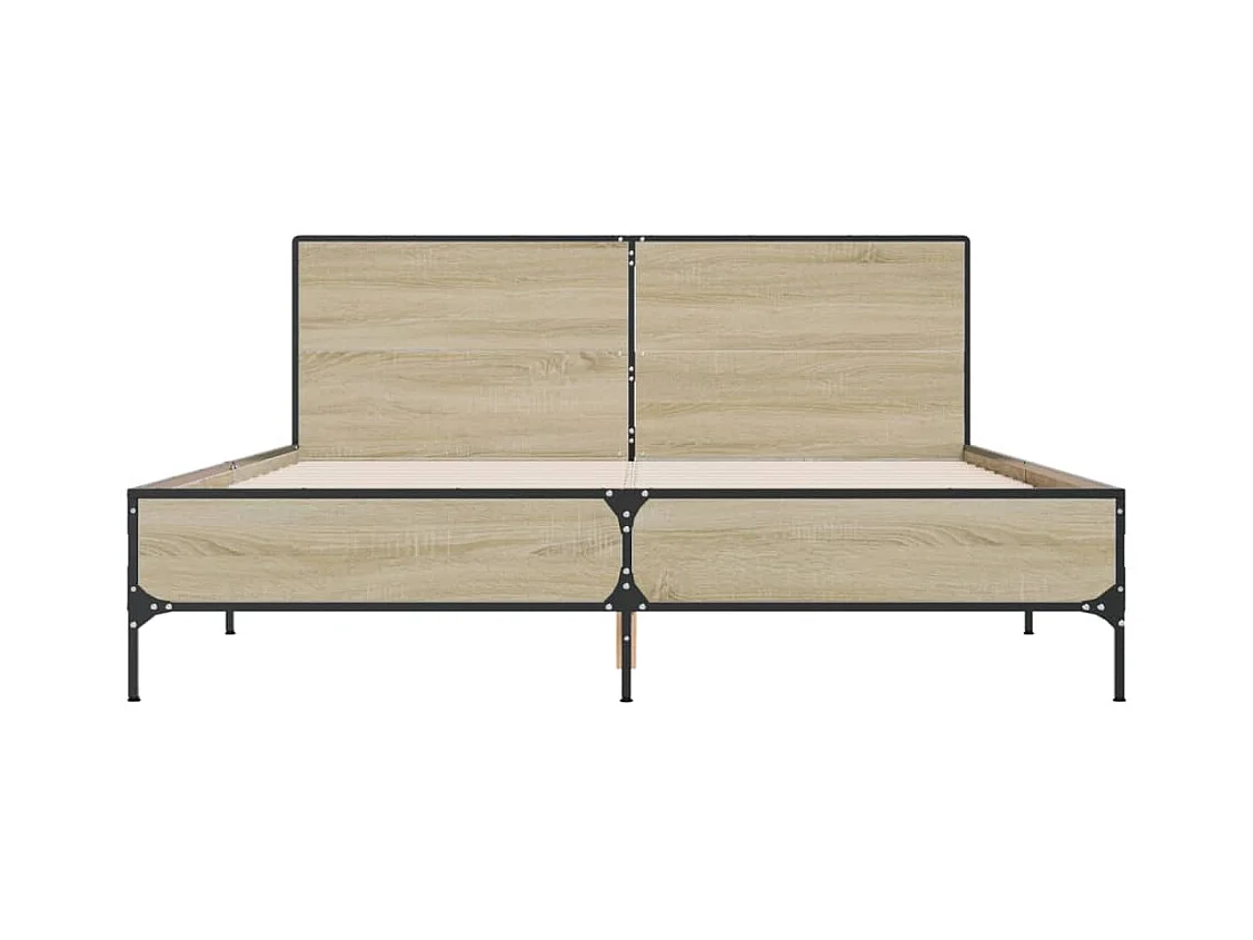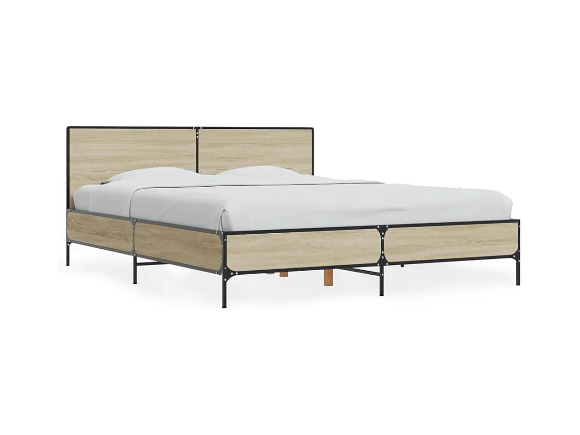 Cama 160x200 cm - madera ingeniería metal roble Sonoma ES504890