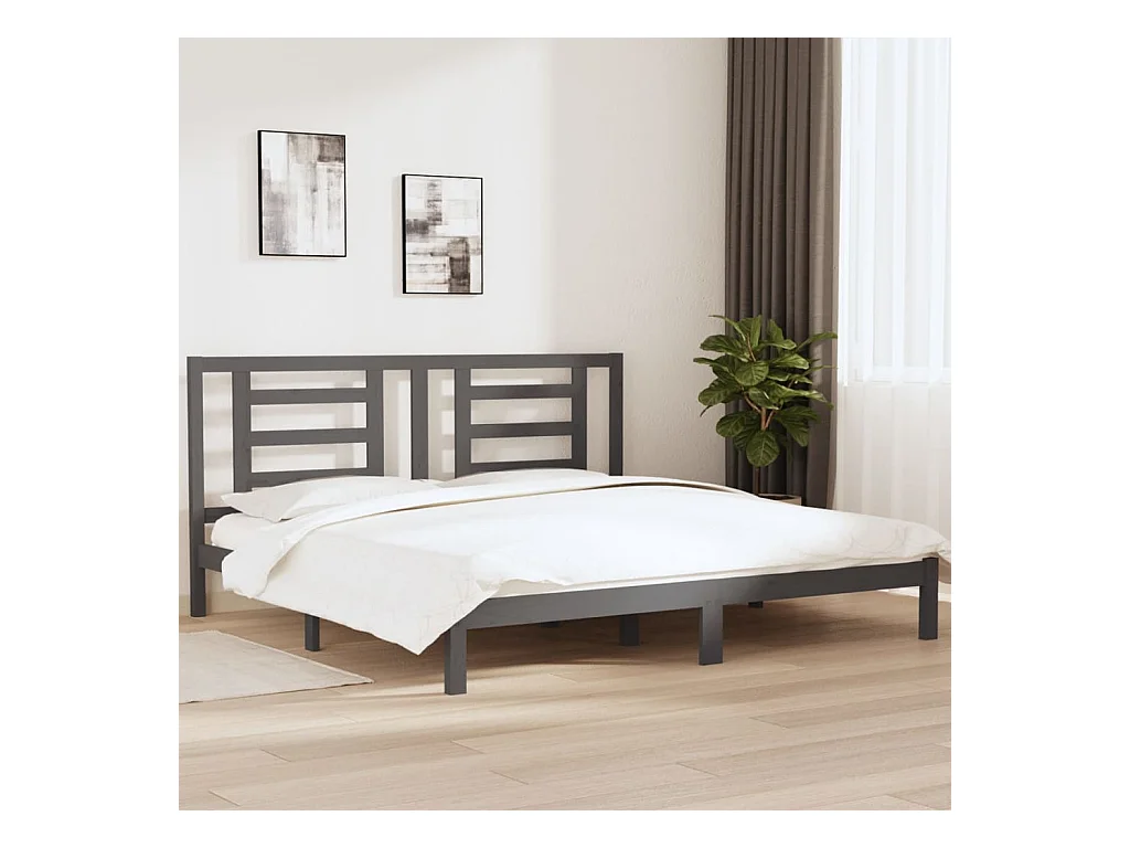 Cama 200x200 cm de madera maciza de pino gris ES20289