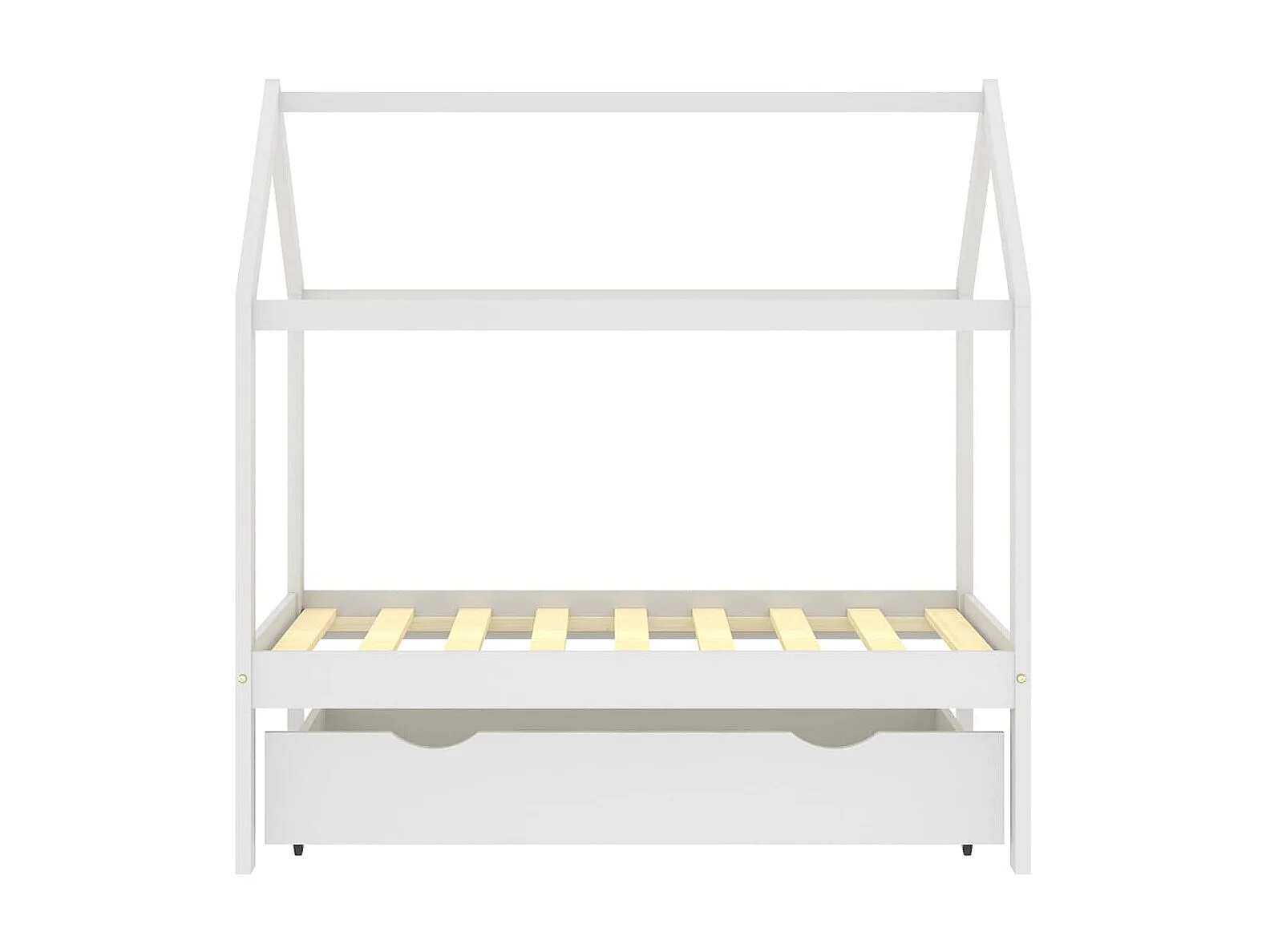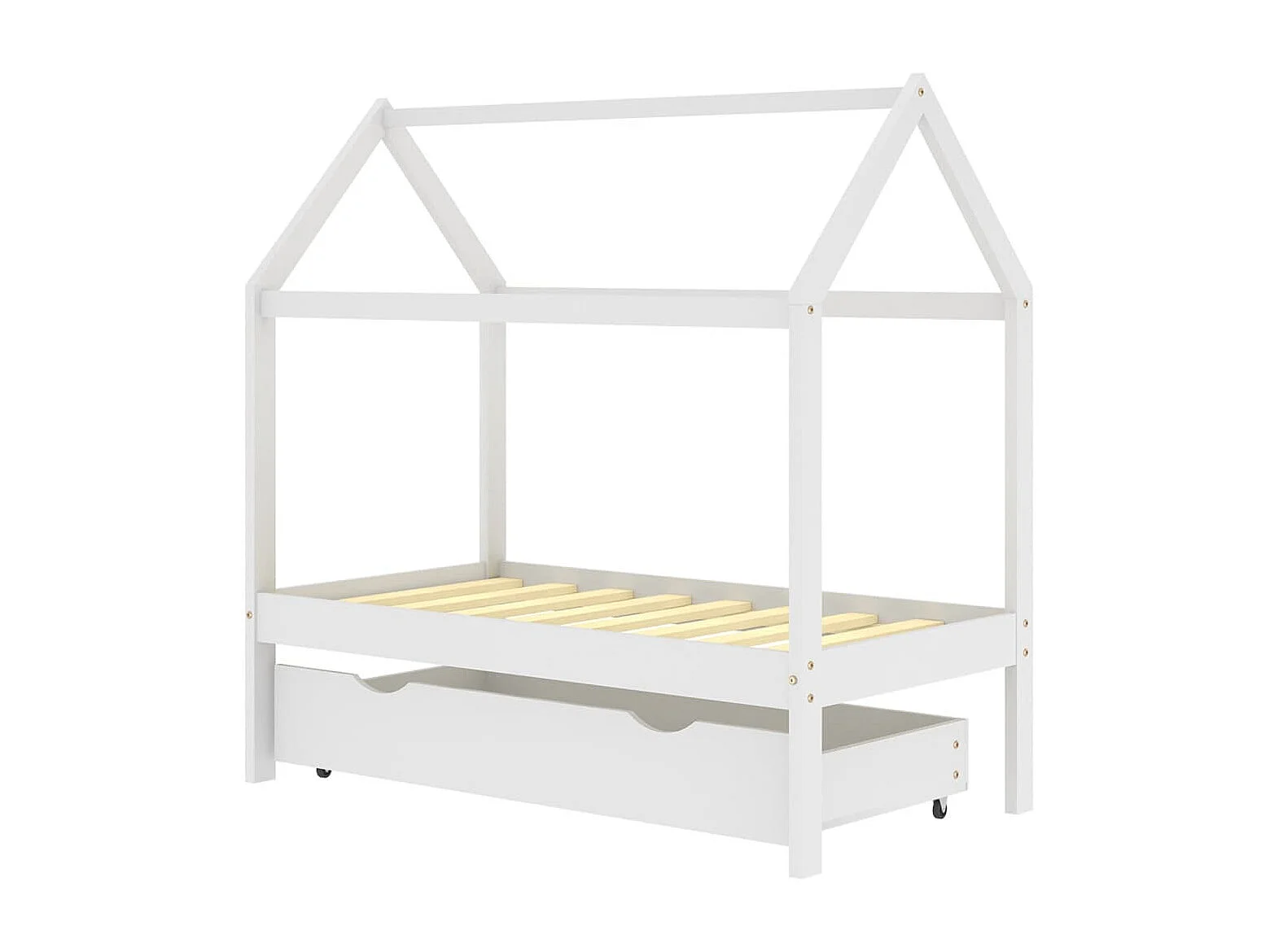 Cama con forma de casa para niños madera maciza blanco 70x140cm