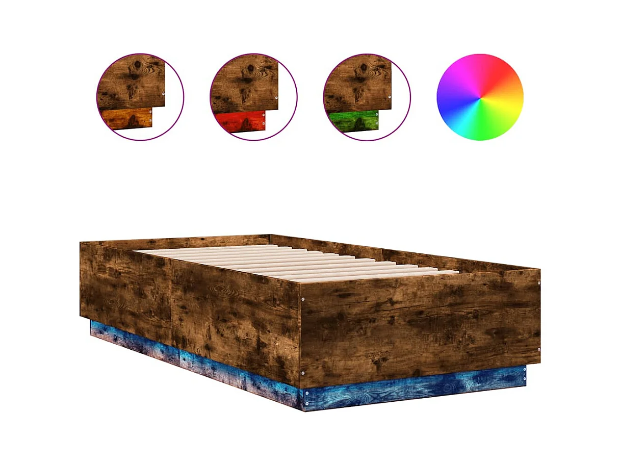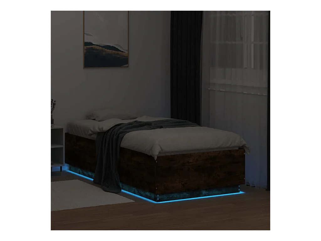 Cama 75x190 cm - con luces LED madera roble ahumado ES244418
