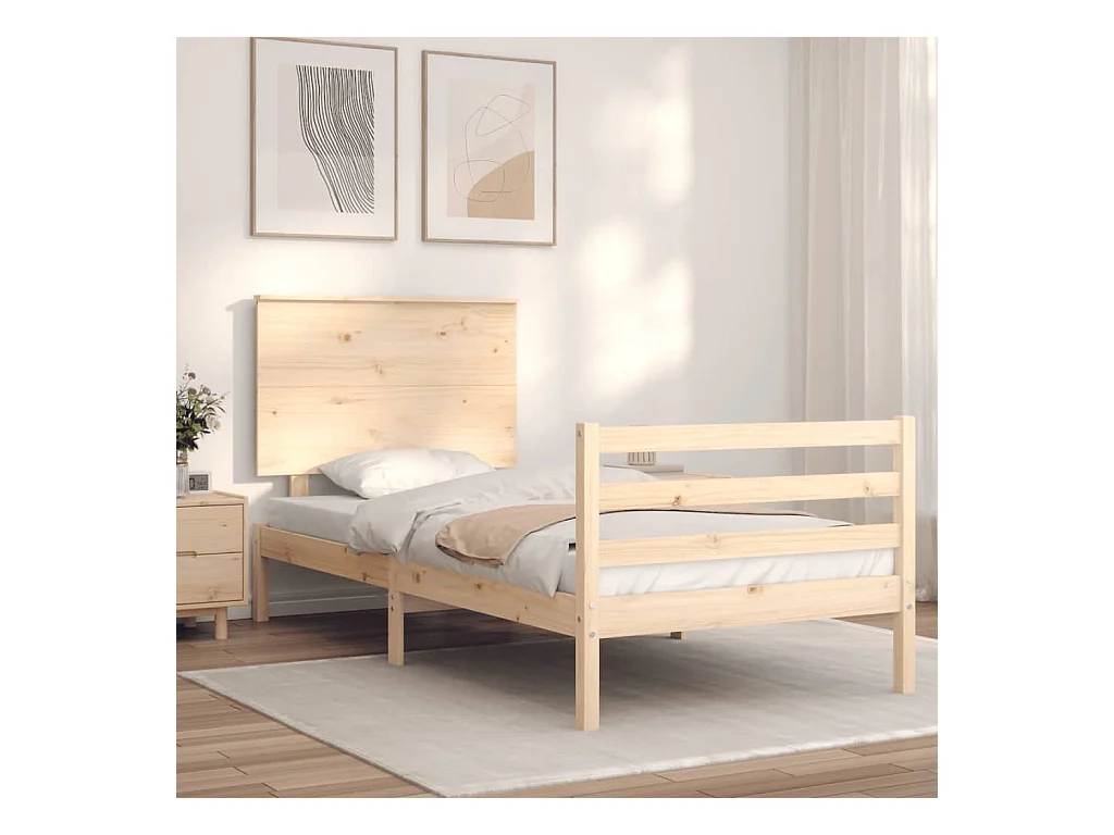 Cama -75x190 cm individual con cabecero madera maciza YOE