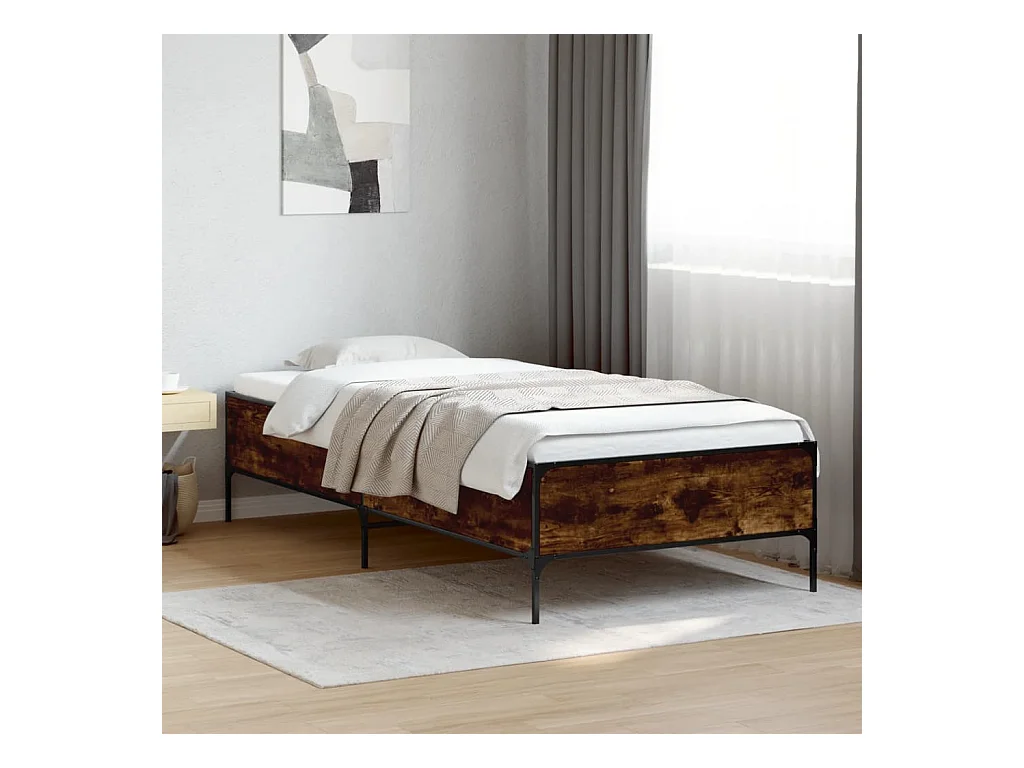 Cama 75x190 cm - madera ingeniería metal roble humo ES891935