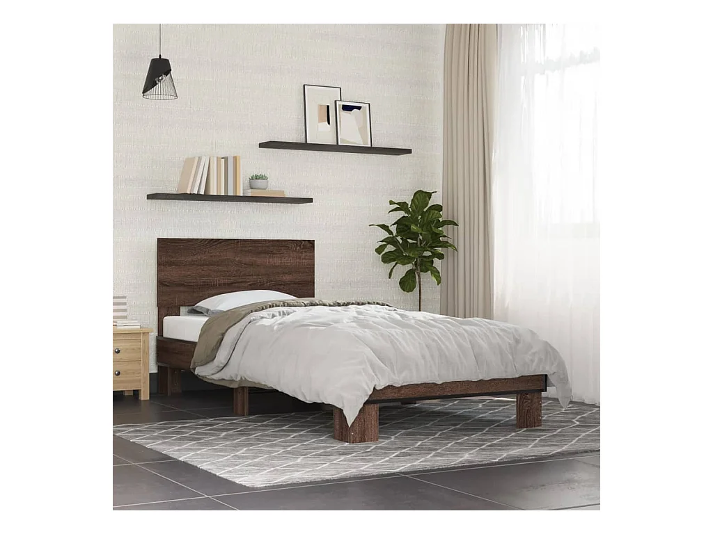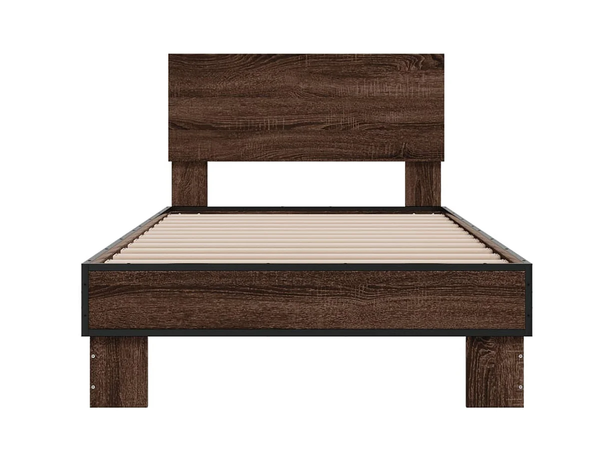 Cama 75x190 cm - madera ingeniería metal roble marrón ES514117