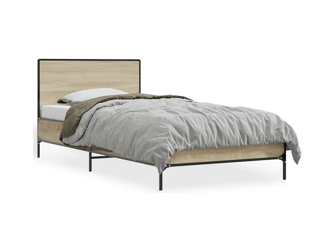 Cama 75x190 cm - madera ingeniería metal roble Sonoma ES780923