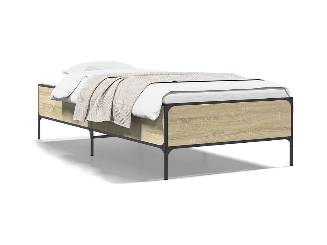 Cama 75x190 cm - madera ingeniería metal roble Sonoma ES874028
