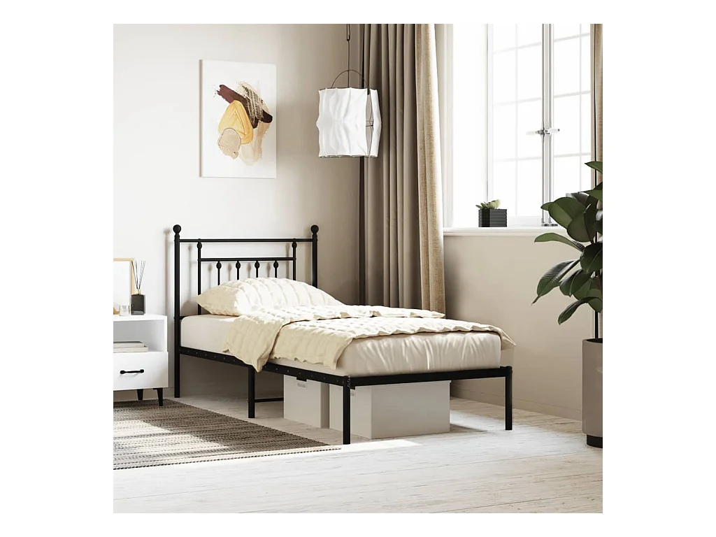 Cama individual- 107x203 cm con cabecero metal negro ES125878