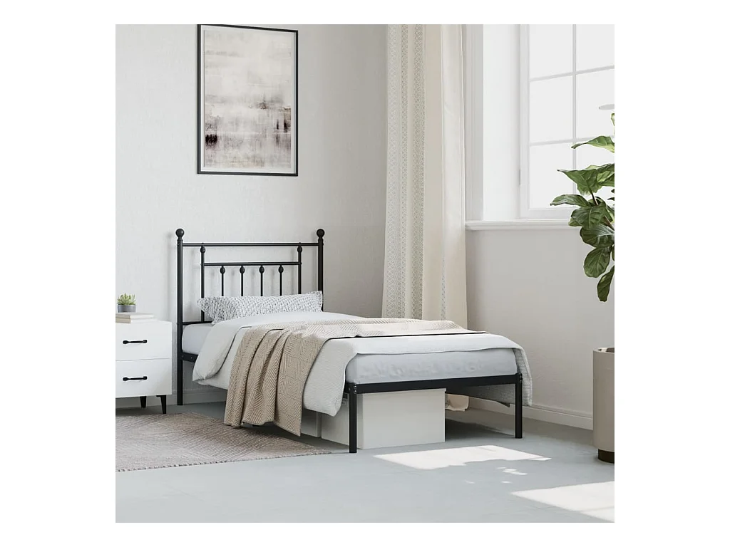 Cama individual- 75x190 cm con cabecero metal negro ES128586