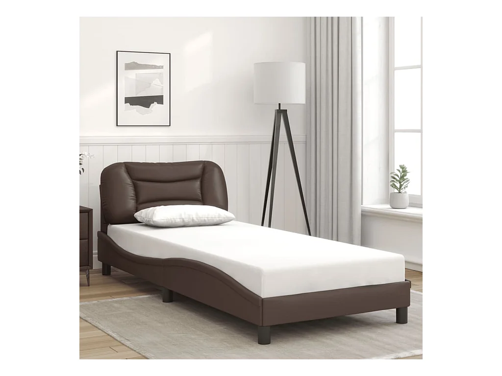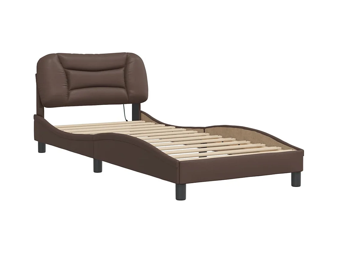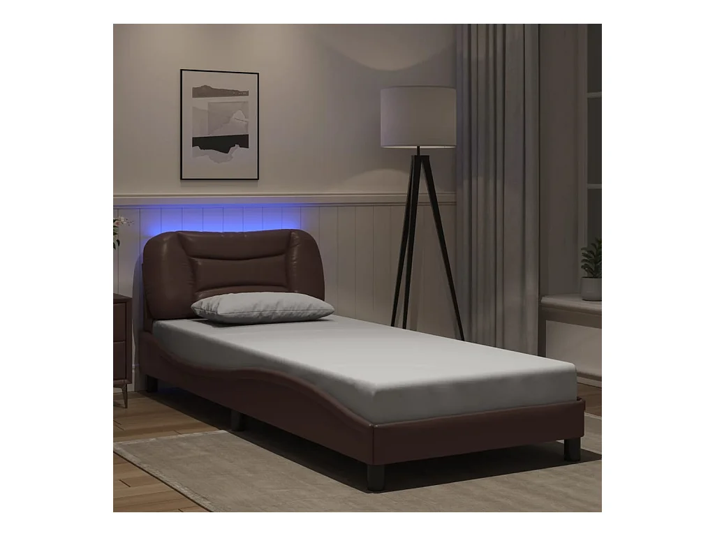 Cama 80x200 cm - con luces LED cuero sintético marrón ES941862
