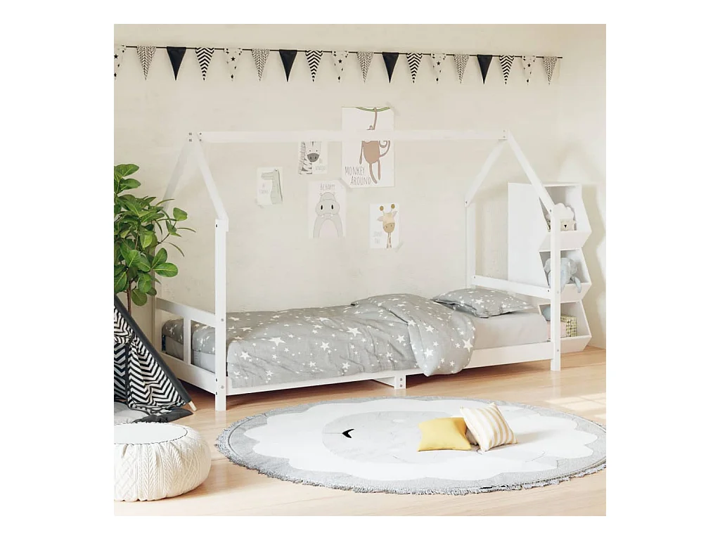 Cama 80x200 cm para niños madera de pino blanco ES98535