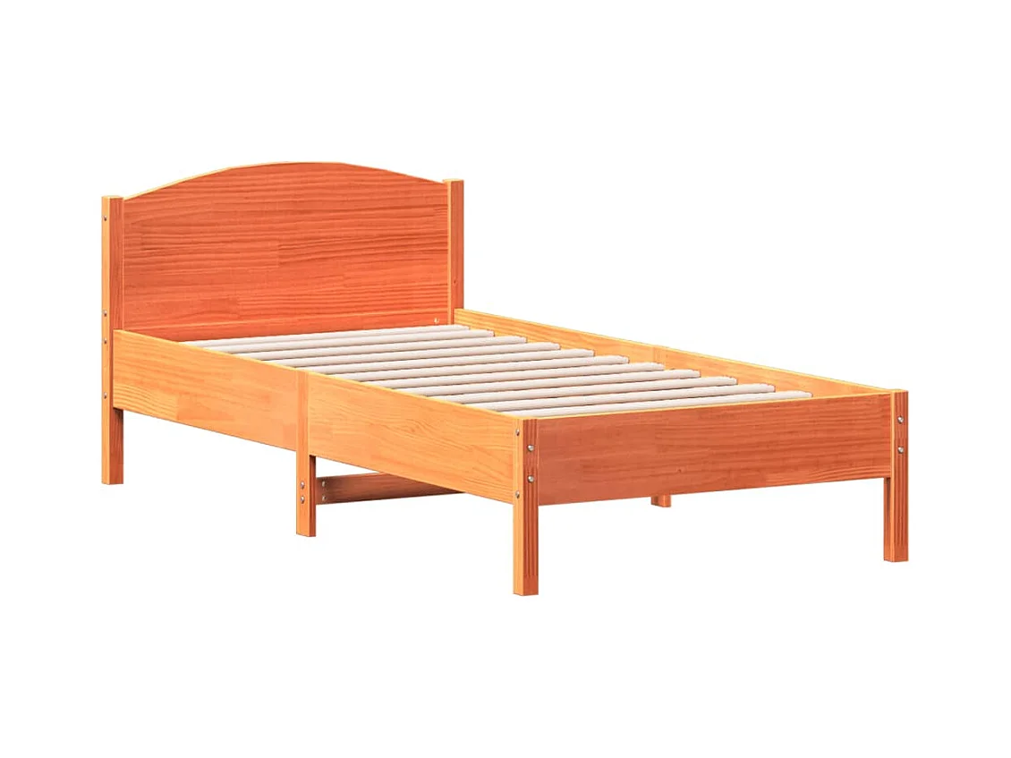 Cama -90x190 cm con cabecero madera pino marrón cera YOE86054