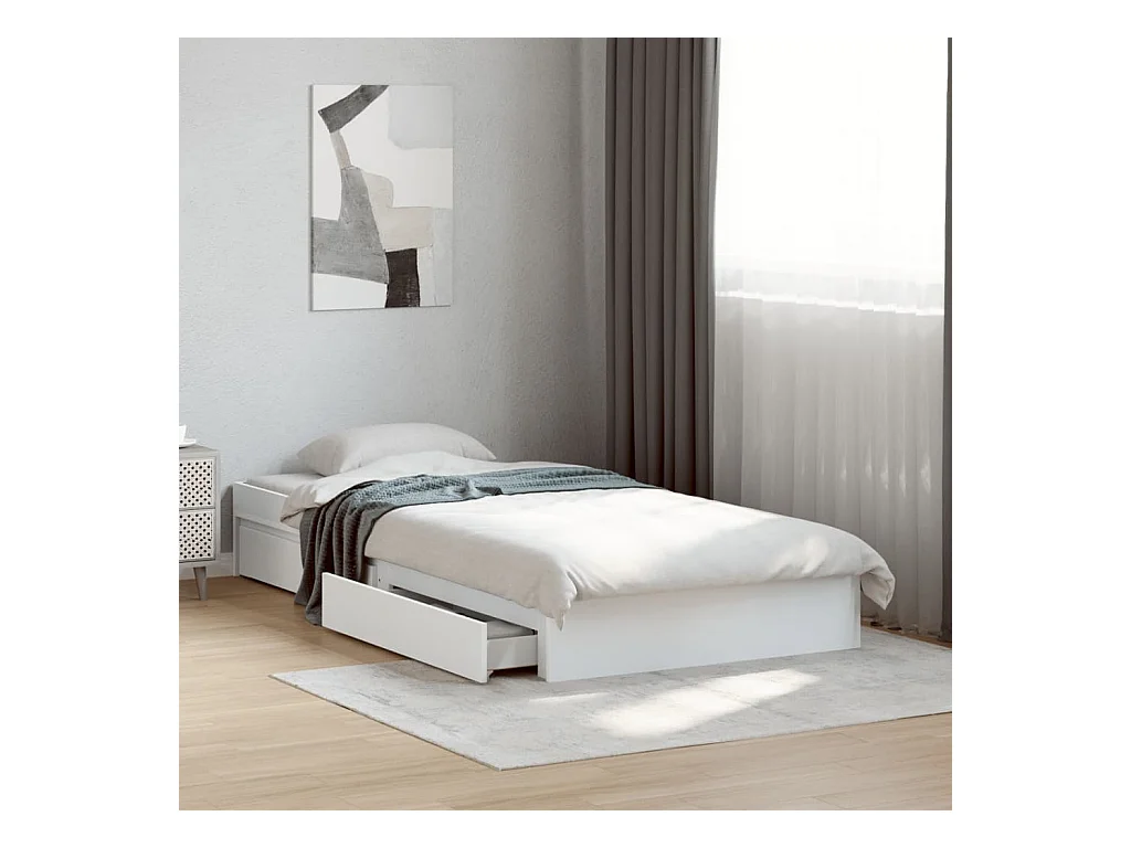 Cama 90x190 cm con cajones madera de ingeniería blanca ES174295