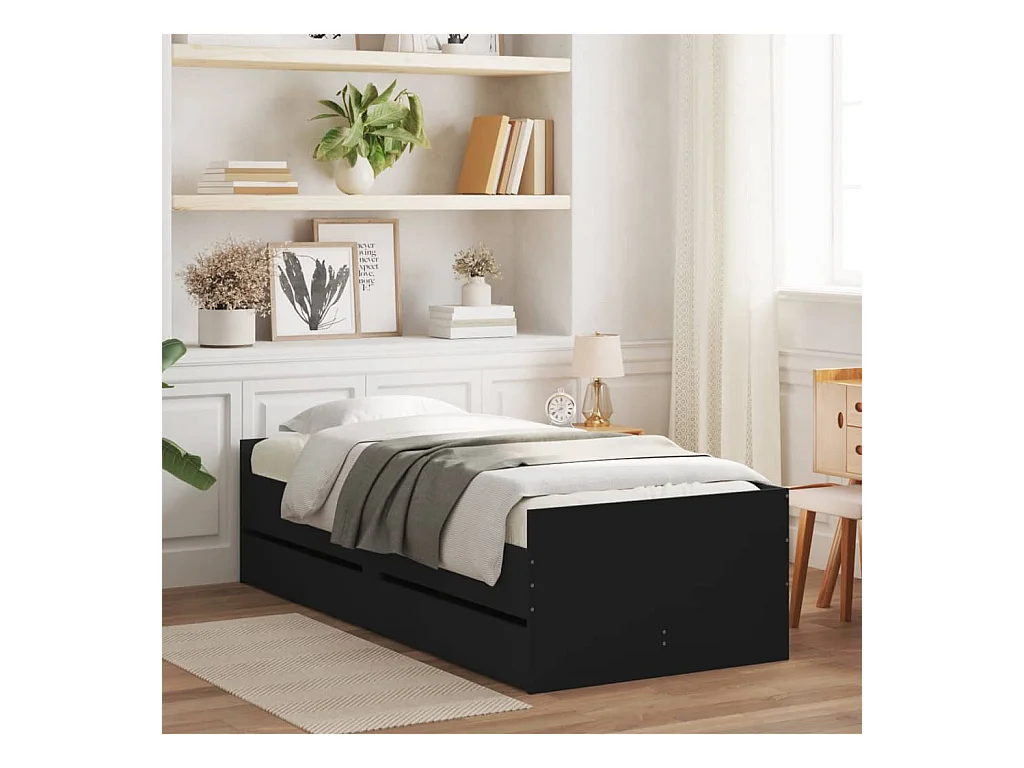 Cama -90x190 cm con cajones negro YOE37198