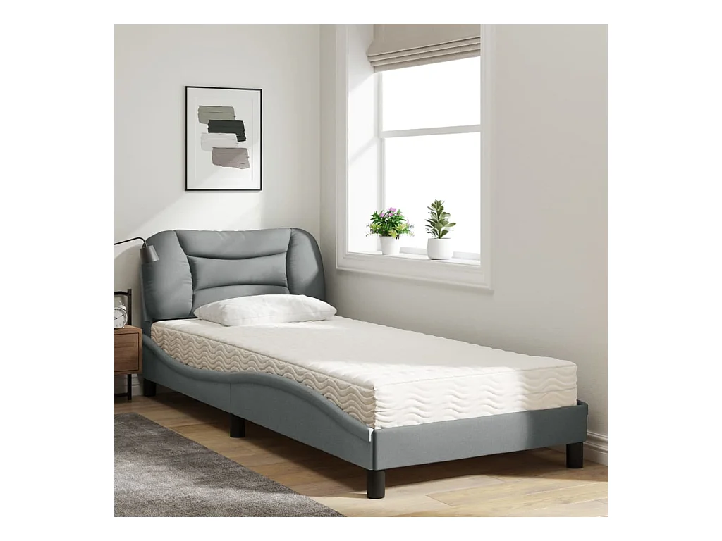 Cama 90x190 cm con colchón tela gris claro ES150780