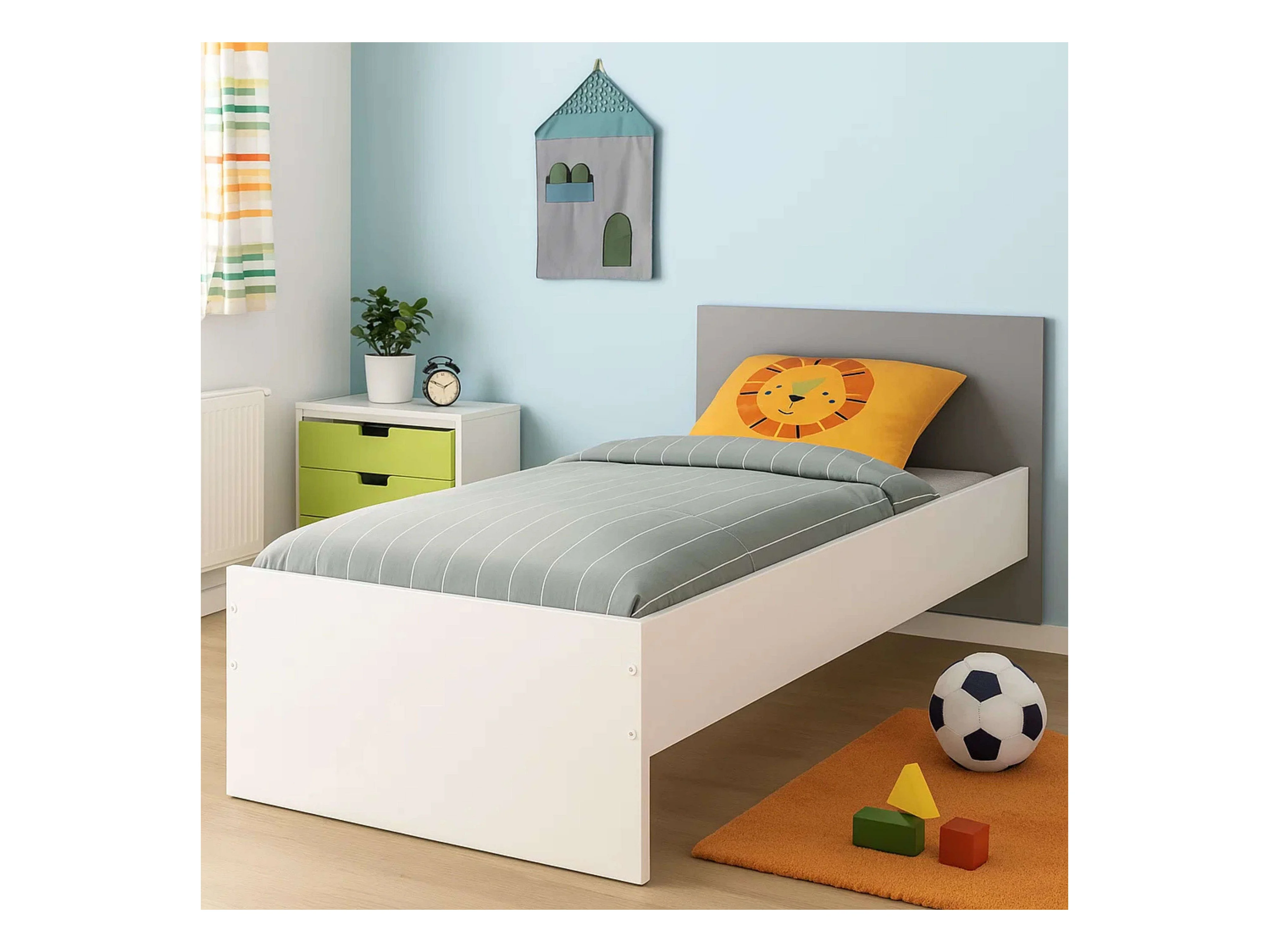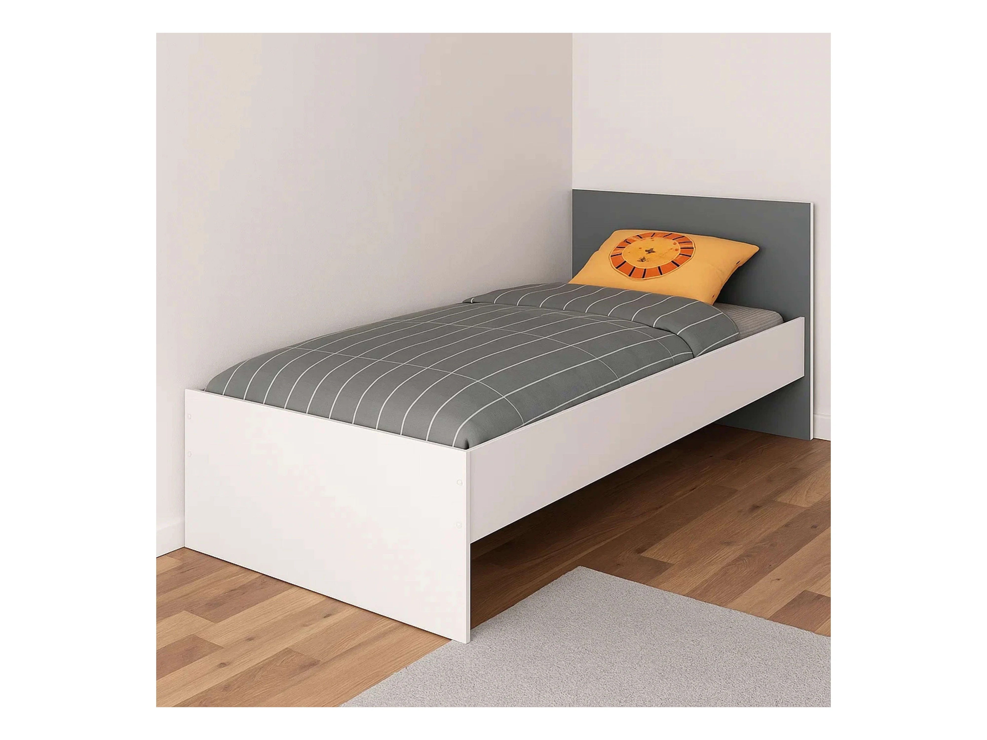 Cama 90x190 Juvenil Germain Blanco Mate y Gris con Cabecero, 120cm