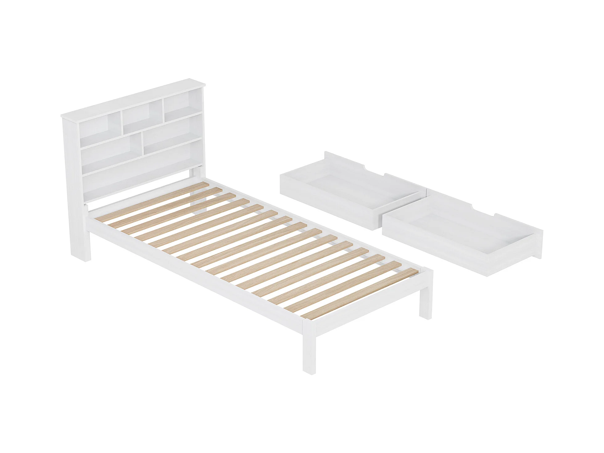 Cama individual 90x200 cm - Estructura de cama con cajones y somier - almacenaje abierto - blanco