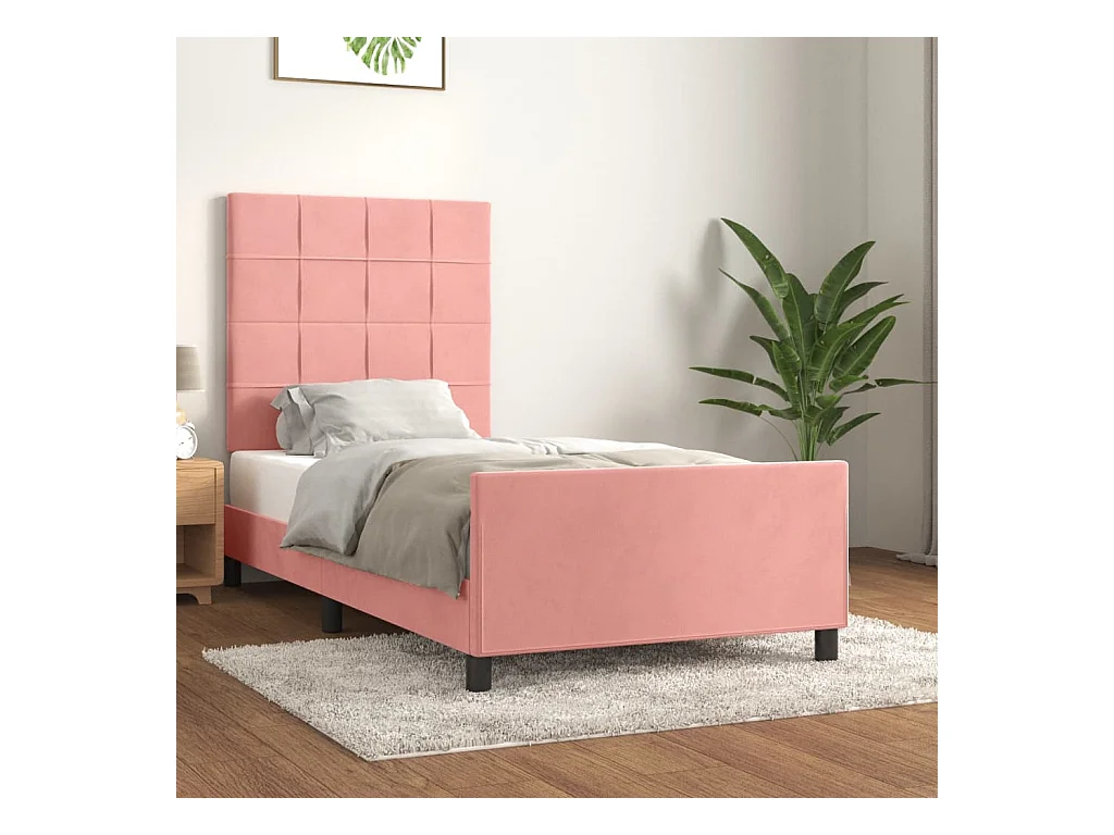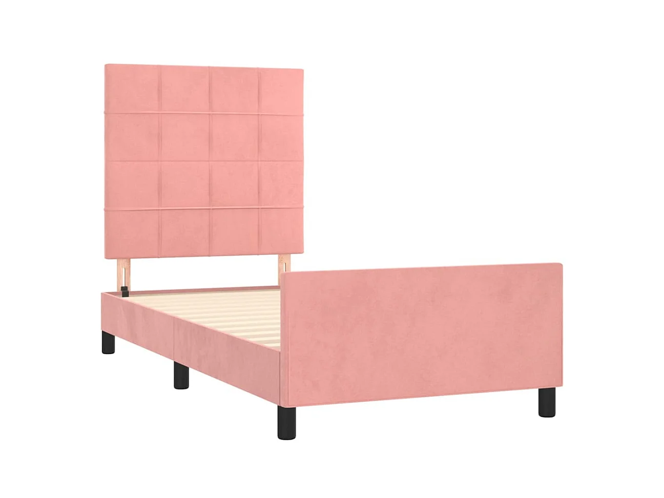 Cama 90x200 cm con cabecero de terciopelo rosa ES99909